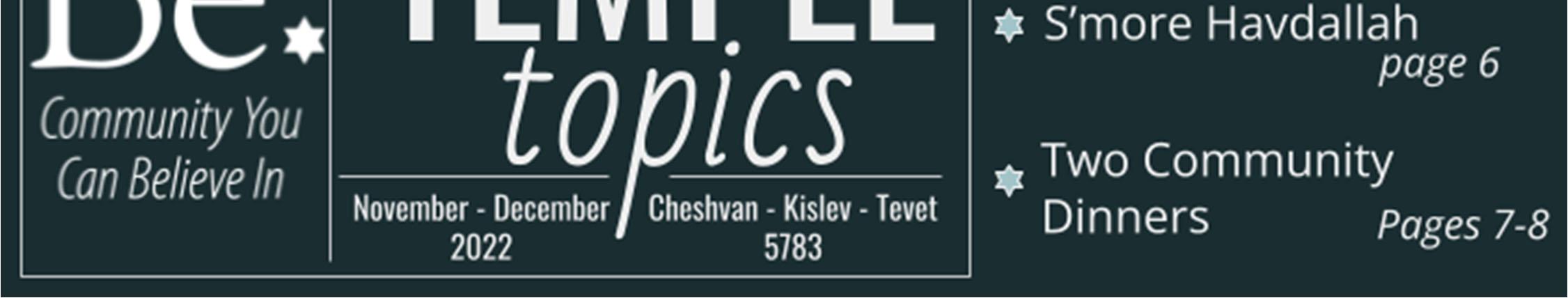 Temple Topics Vol. LVIII, No. 2 November - December 2022 Cheshvan - Kislev - Tevet 5783 3