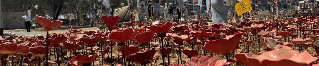 But at the same time and in the same place, there is a sculpture of the Kalaniot , the beautiful red wildflowers that blanket the Negev region each Spring. They symbolize a new beginning, a way forward.
