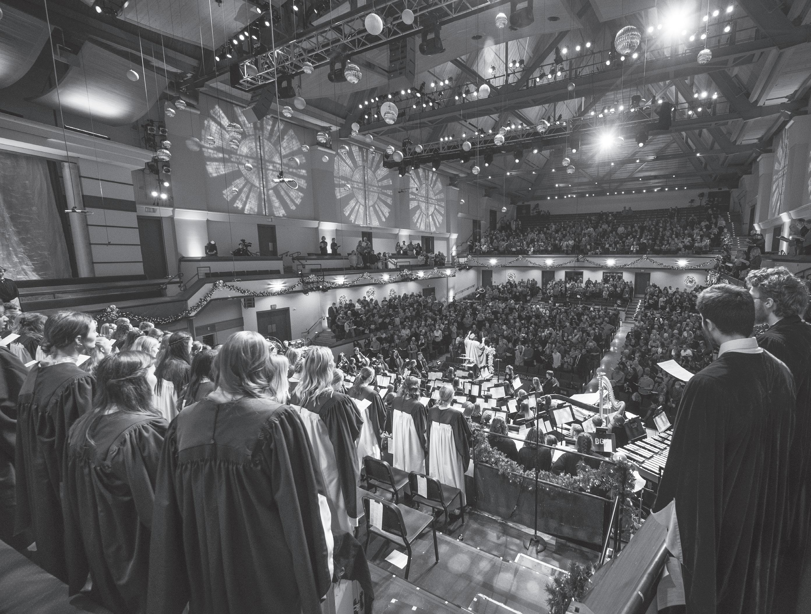 The Bethel Choir, Wind Symphony, and Chamber Orchestra tour extensively throughout the United States and abroad. These groups, along with Bethel’s other performance ensembles, perform together in Bethel’s annual Festival of Christmas, Jazz in the Great Hall, and Classics in the Great Hall concerts. The Philharmonic Orchestra, Royal Register, Lucia Chorum, Jazz Orchestras, Handbell Ensemble, and string and wind chamber ensembles ofer additional performance opportunities.