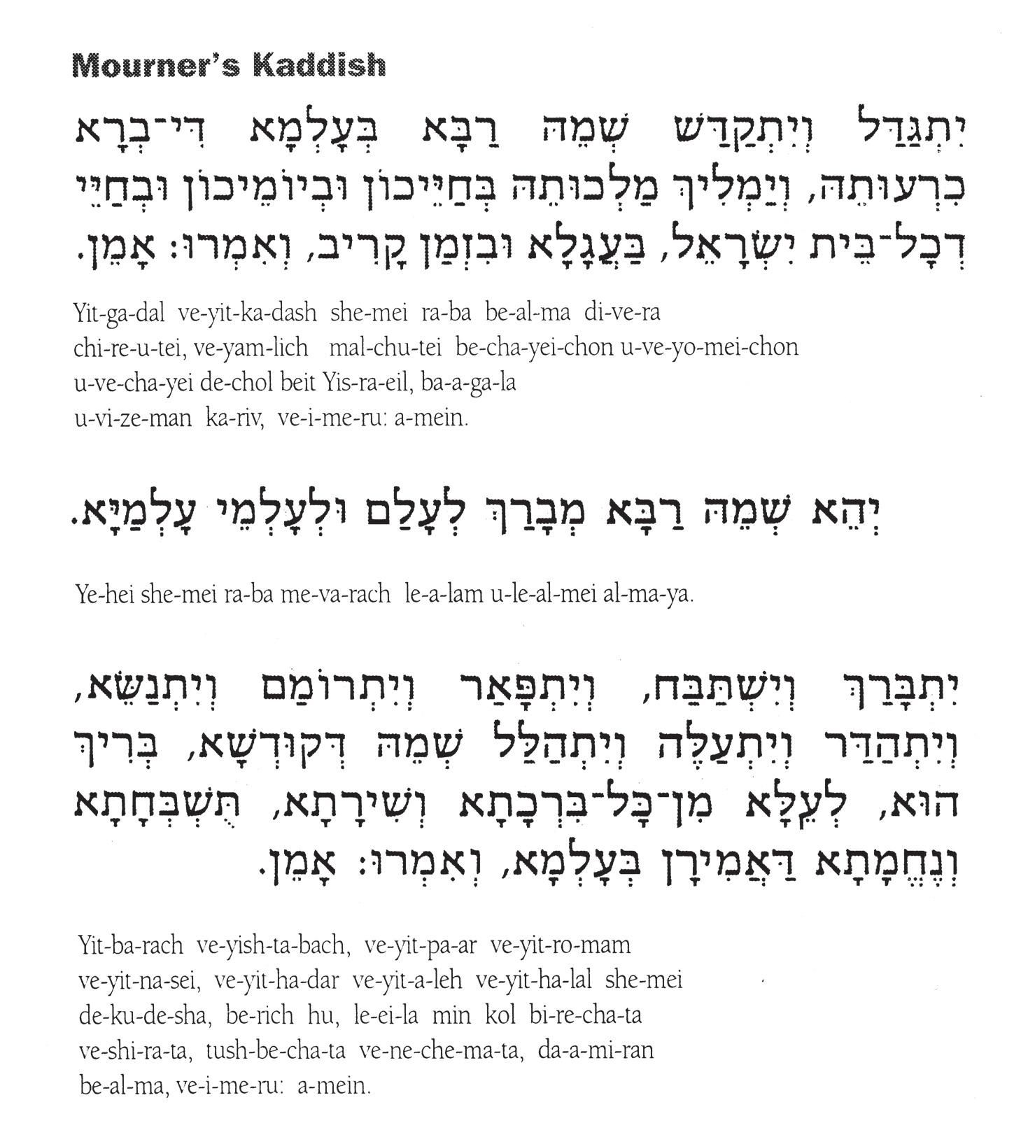 Mourner’s Kaddish Prayer . . . . . . . . . . . . . . . . . . . . . . . . . . . . . . . . . . . . . . . . . . . . . . . . . . . . . . . . . . . 7