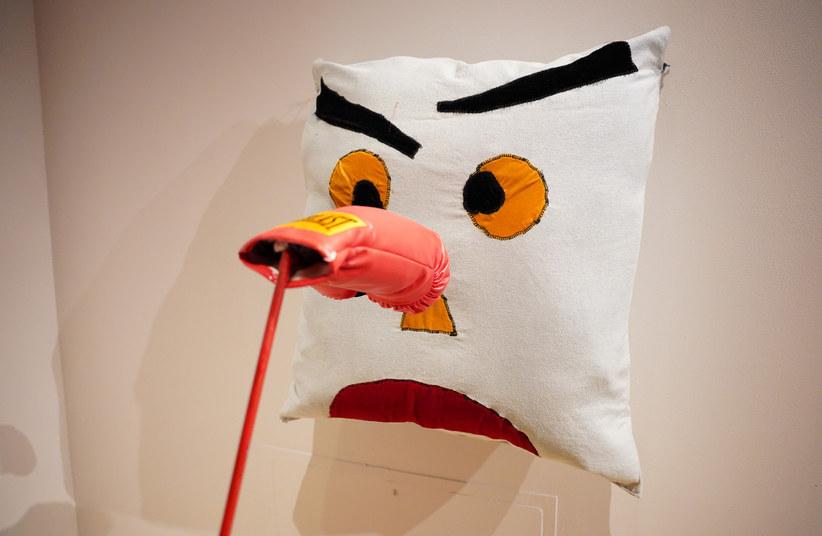 This piece is arranged almost as a ‘Freak Show’ where participants can act either as a viewer, or as the viewed. You can crawl into the child-sized circus tent and sit comfortably on the floor and watch, muffled by a TV screen. A second participant is invited to enter the stage-like area, where a twin bed is surrounded by red curtains. The motions of jumping on this bed- one that has been modified to function as a springboard can elicit memories of jumping on a bed as a kid, innocuously disobeying rules, or of the squeaking of beds during sexual acts. This teetering between child-like and sexual, filthy and innocent, curious and perverted, embodies, for me, the sort of queerness in kid friendships that can be filled with such passionate love, and the occasional natural urge to practice and explore bodies before you even know what that means. This all culminates in a contraption that punches a pillow. This pillow is modeled after an “angry pillow” that my mom made for my older brother to punch as a kid to try and satiate his young rage. I look back at this as such a sweet, tender moment of cultivating our most basic needs through this handmade creation.