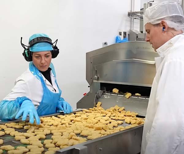 De har eget kjøkken i butikken – et eget rom ikke langt fra inngangen til lageret. Her steiker