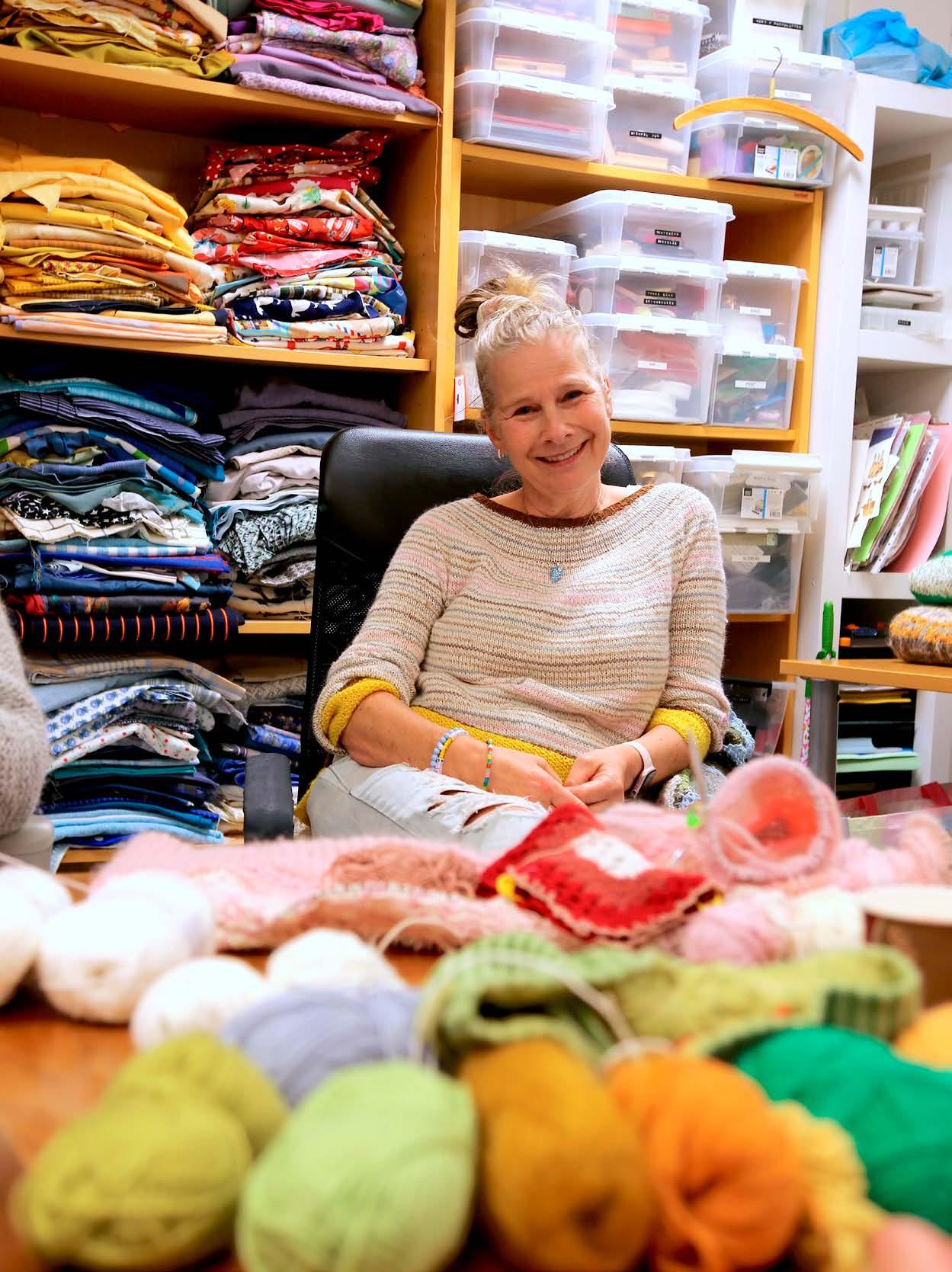 Synål og strikkepinner gjør underverk – Å komme hit til disse sprudlende damene, gir energi. Vi ler mye sammen, sier én. Å strikke og hekle har hjulpet meg, smiler en annen. Nå begynner jeg å få selvtilliten tilbake, sier en tredje. Fellesskapet i designgruppa på Ålgård gjør faktisk underverk.