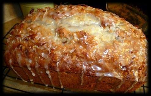Preheat oven 180 degrees. Put a spoonful of flour in dry measuring cups; level with a knife. Combine flour, baking soda and salt, stirring with a paddle attachment. Putting sugar and butter in bowl. Beat with mixer on medium speed until well blended. Add one egg at a time, beating well after each addition. Add banana, yogurt, rum and vanilla; Whisk until blended. Add the flour mixture. Beat at low speed until moist. My heart 1/2 cup coconut. Pour mixture into a standard size loaf pan covered with cooking spray; Sprinkle with 1 tablespoon of coconut. Bake at 180 degrees for 1 hour, or until a stick inserted into the center comes out clean. Cool in skillet for 10 minutes on a wire rack; Remove from skillet. Combine powdered sugar and juice, stirring with a whisk. Sprinkle on warm bread. Cool completely on a wire rack. Enjoy!