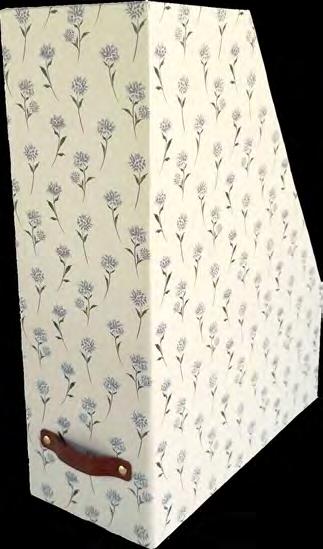 Each magazine holder comes fully assembled and features sturdy construction with a soft touch matte coating and a 3”Wx1/2”H leather handle with brass rivets making it easy to access the interior contents. For that extra special touch, the interiors feature a pop of blue to coordinate with the exterior design. Size 9.75”Wx12.5”Hx4”D
