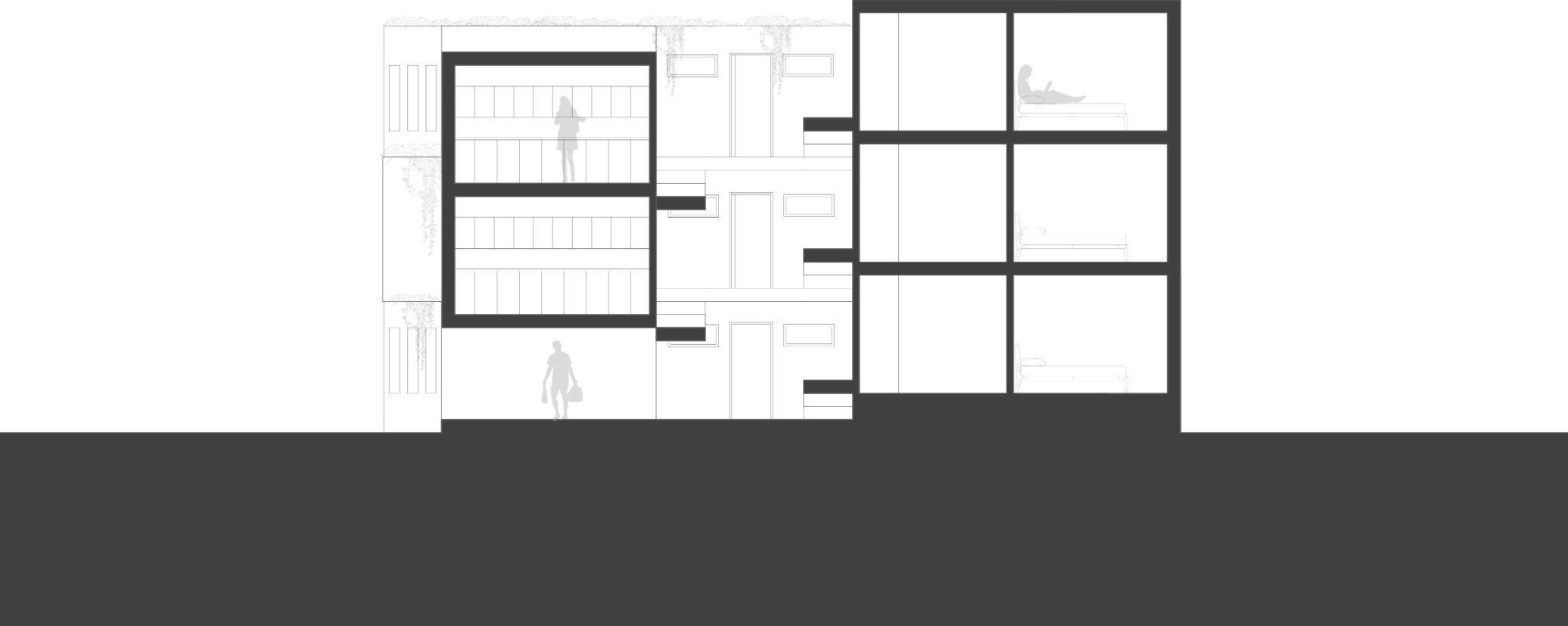 Section of Module B Schwefler Scale Northeastern University School of Architecture Betsy Schwefler Urban Walk-up Housingof Architecture First Floor Floor 1 Floor 4 Section B’