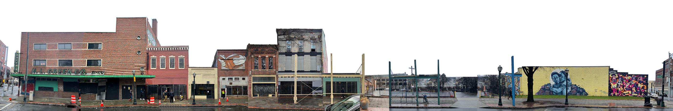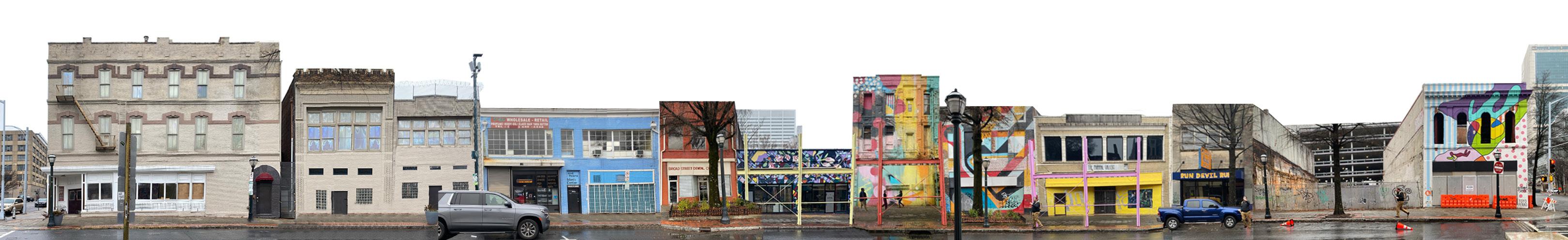 This project is based in Atlanta, Georgia, but is being designed in New York, meaning an in-depth site analysis was extremely important. I was able to help with this in the initial stages of the project by photoshopping street elevations of the existing facades and laser cutting massing and facade models. I also looked through historical photos of the site to try and catalog the history of these buildings and which facades are essential to the historical nature of the site and should remain.