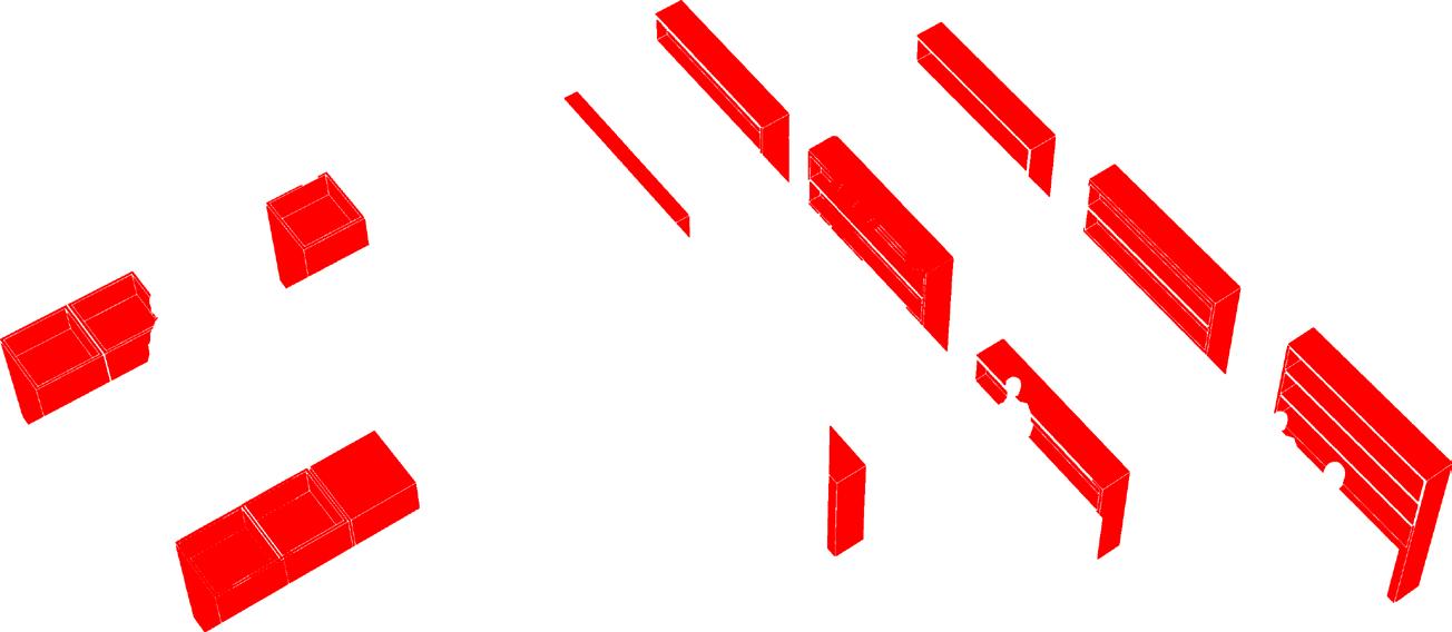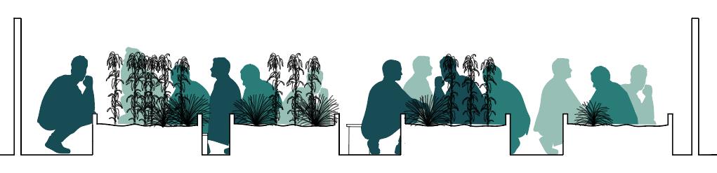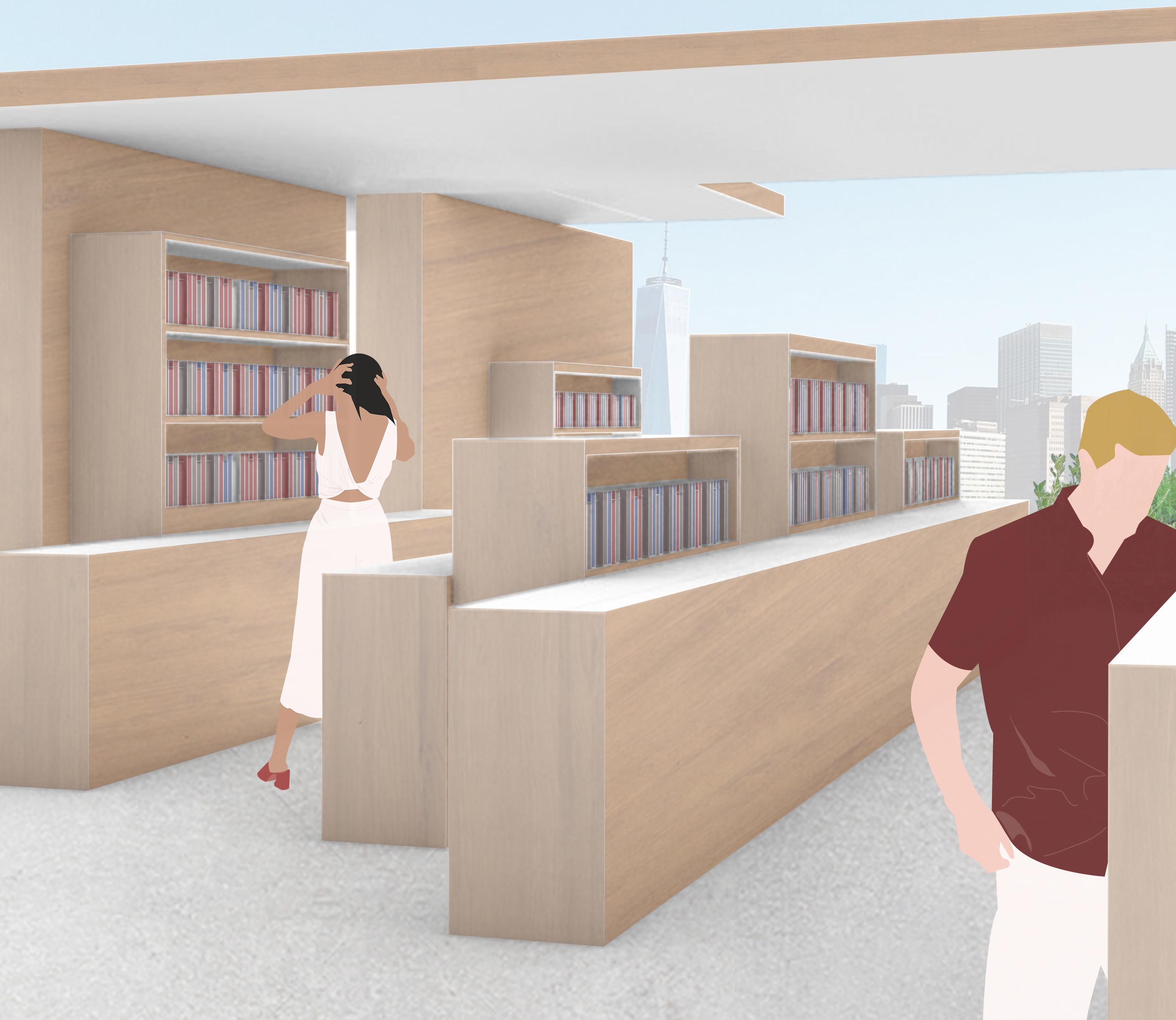 This was the first studio project that I completed entirely remote, due to the COVID-19 pandemic. To adapt my design to what was happening in the real world, I put the shelves and garden boxes on tracks between the benches, allowing for someone to pull a shelf or garden box to a private area. This flexible design also creates a unique experience every time a user passes through the pavilion.