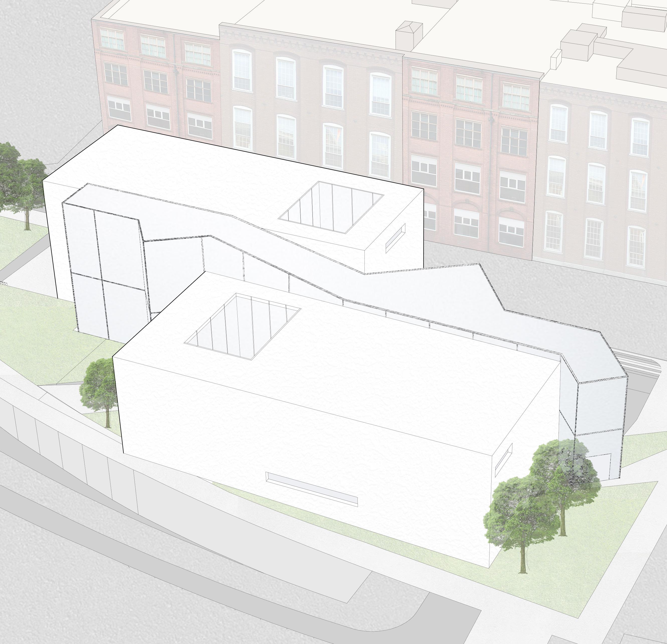 The foundation is in Chamberi, Plaza de Los Chisperos, a historic plaza frequently used by the neighborhood. When designing this building, I wanted to disrupt the existing plaza as little as possible, ensuring the pre-existing paths often taken to various puplic transportation stops or surrounding buildings remained accessible. I also wanted to bring life into the plaza by placing the entrances near the center and filling the area with publicly accessible art.