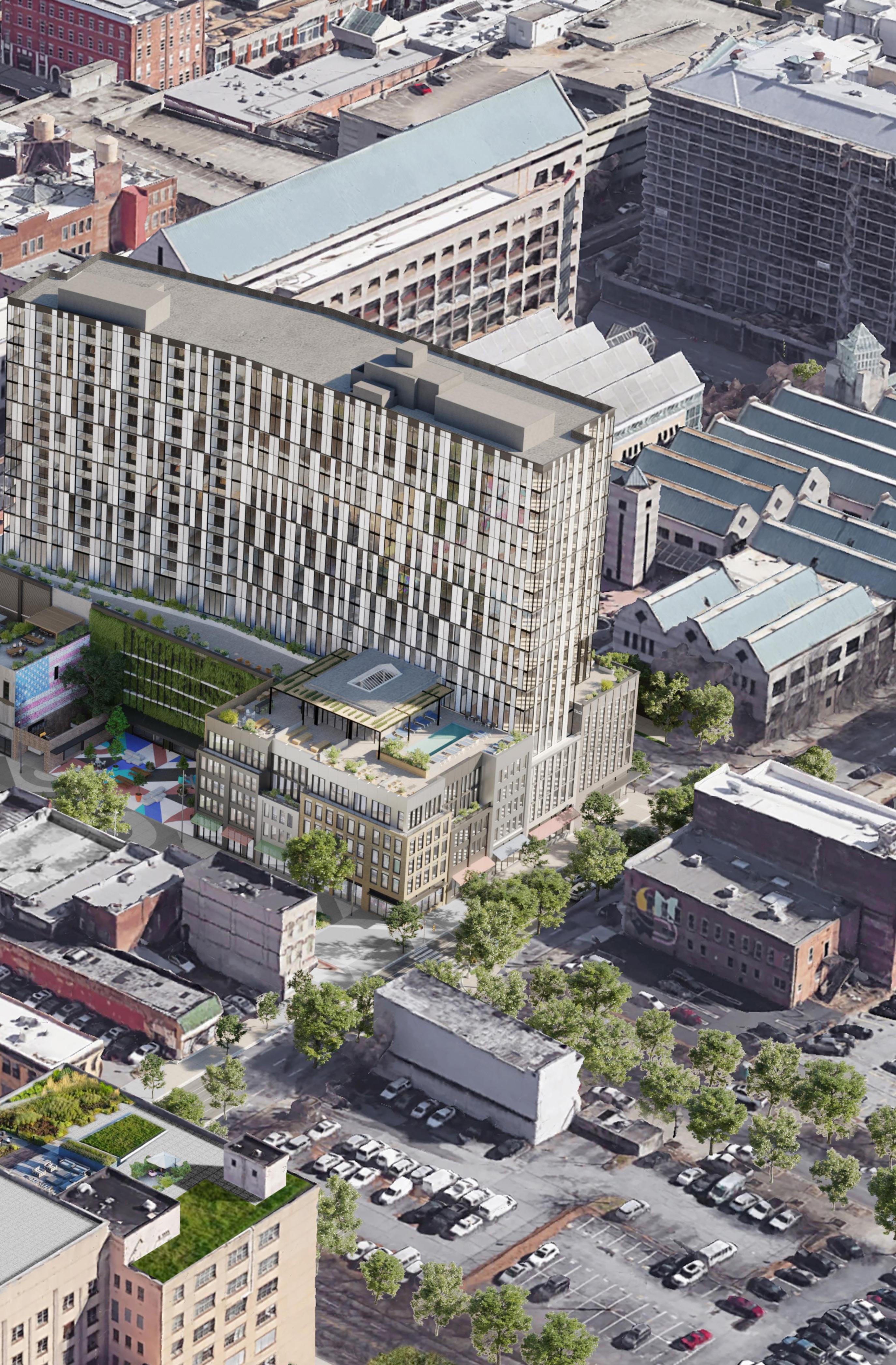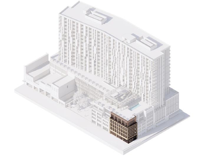 I created elevation and axonometric diagrams of the site to document the importance of the existing site and the formation of the podium design used both in client meetings and in firm-wide presentations about the project.