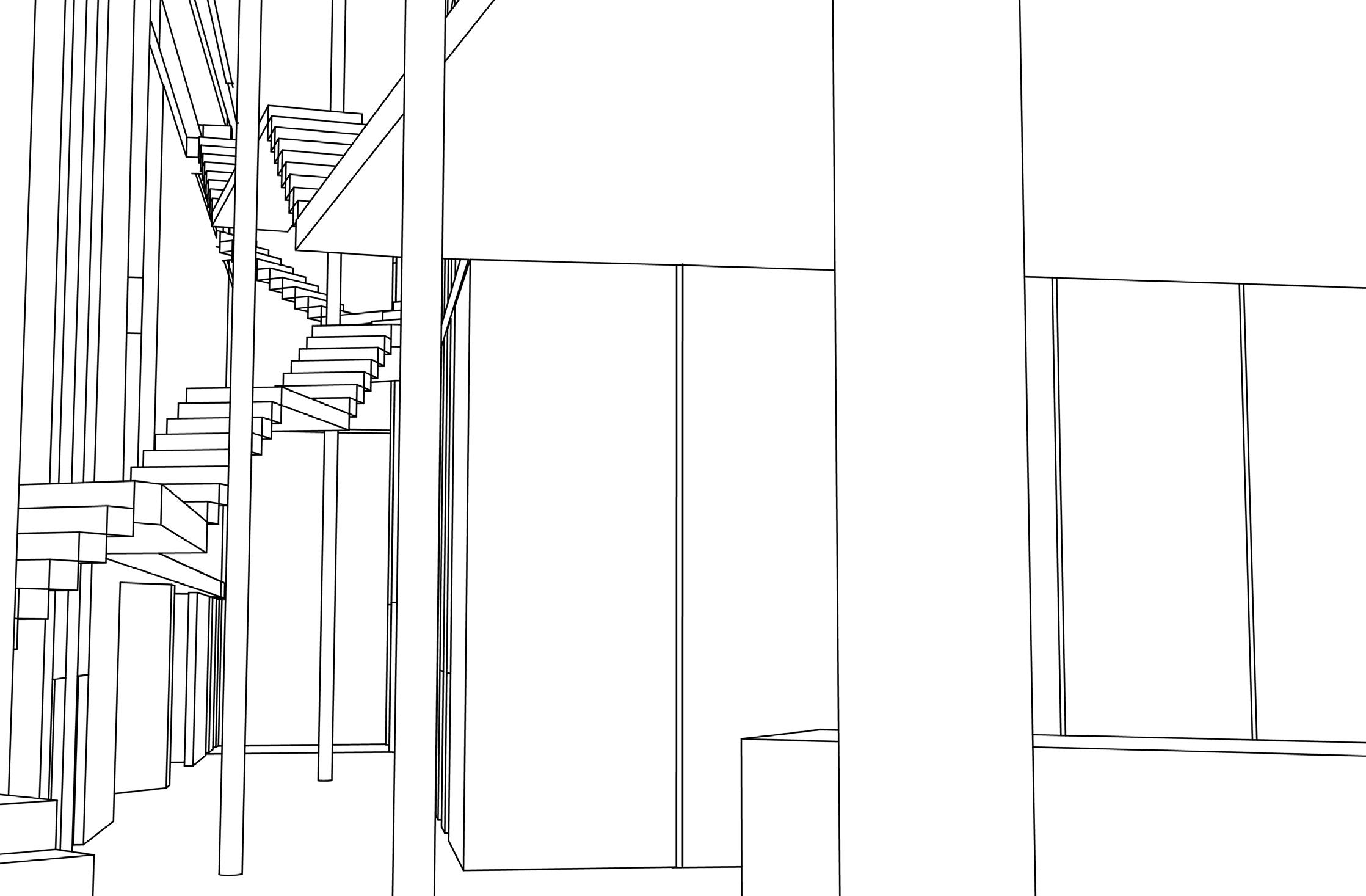 Our studio then moved to an abandoned site across the street, to design a new branch of the Boston Public Library for Chinatown. My library focused on loops of circulation throughout a central axis, as well as a community garden that merged indoor and outdoor spaces. To form this project, I offset two boxes horizontally and vertically. I then created a main axis that contains all the circulation and encased it in glass, allowing the stairs to shape the direction of light and views throughout the building, the grid lines created by the stairs also shape the placement of the shelves and seating.