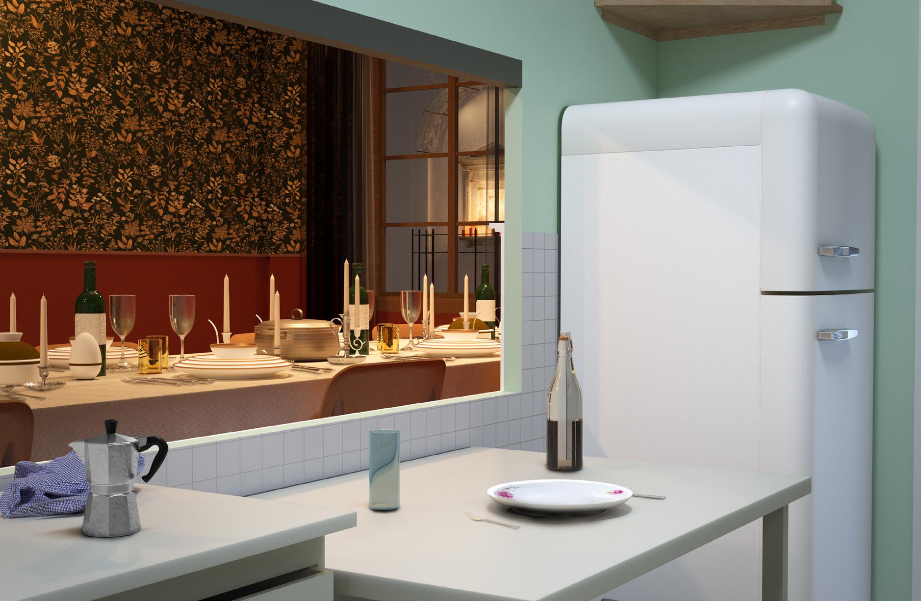 Employing techniques such as 3D modeling, rendering, and image manipulation, I presented the project as a live performance. By reciting a script that combines original text from the book with speculative narration, I introduced the audience to the play, unveiling the research and unraveling the significance of the designed stages. The culmination of the performance included a film revealing the true nature of these spaces as fictional theater stages, highlighting their temporality and their role in a broader narrative and spatial exploration of domestic environments and female roles. The stages were modeled and rendered using Rhino 7 and Vray.The project and research are available on RCA 2022 online show
