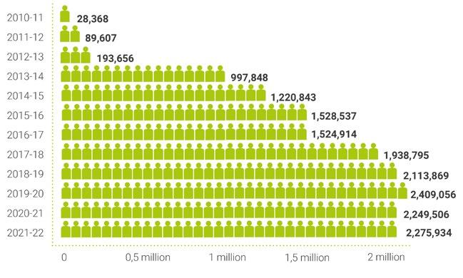In the 2021-22 cotton season, out of the 2.8 million farmers who received training, more than 2.2 million received a license to sell their cotton as Better Cotton and produced 5.4 million (5,414,111) tonnes of Better Cotton