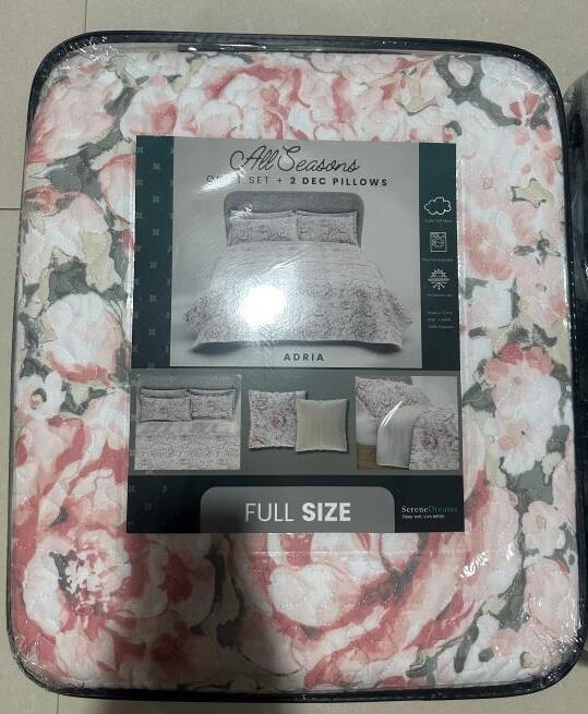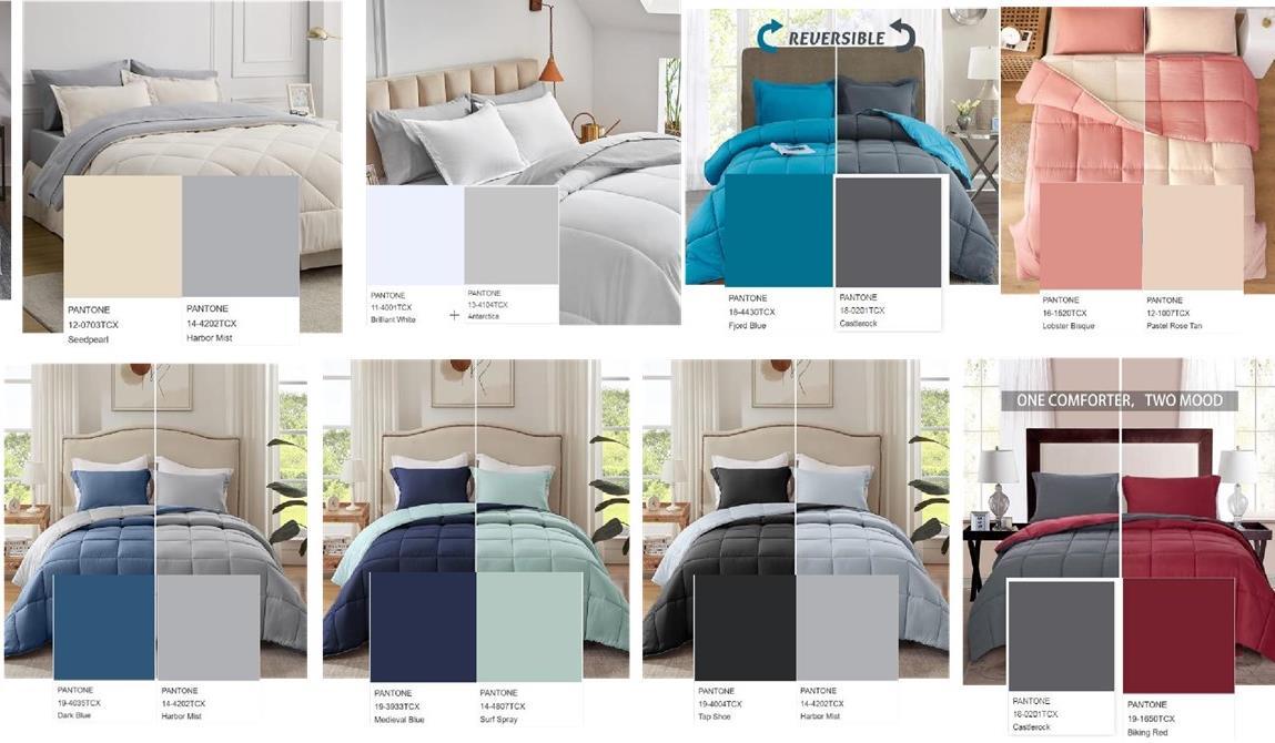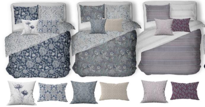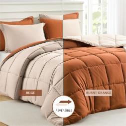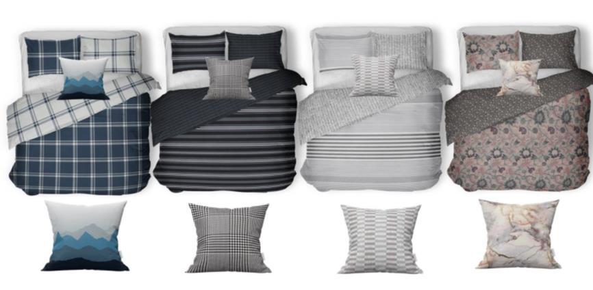 L21-BD078 5pc. Reversible Printed Comforter Set • 1 Reversible comforter * 2 Printed Shams w/Flange * 1 Printed Décor Cushion 16” x 16”, *1 Printed Décor Cushion 12” x 16”