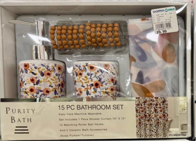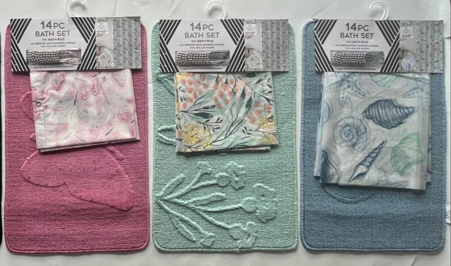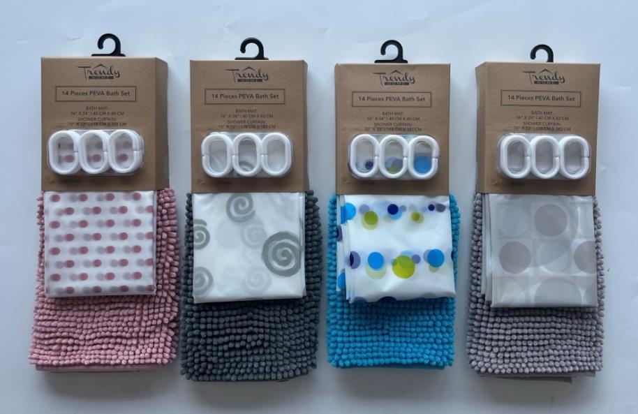 G21-BA13 14pcs bath set – Peva shower curtain , bath mat ,12 hooks