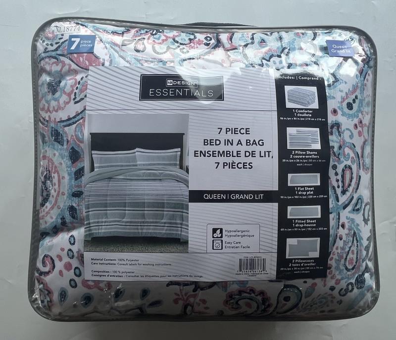 NL18774-G 7 PIECE BED IN A BAG – include 1 comforter , 2 pillow shams , 1 flat sheet, 1 fitted sheet, 2 pillowcases