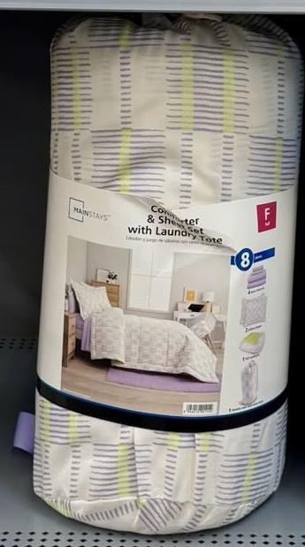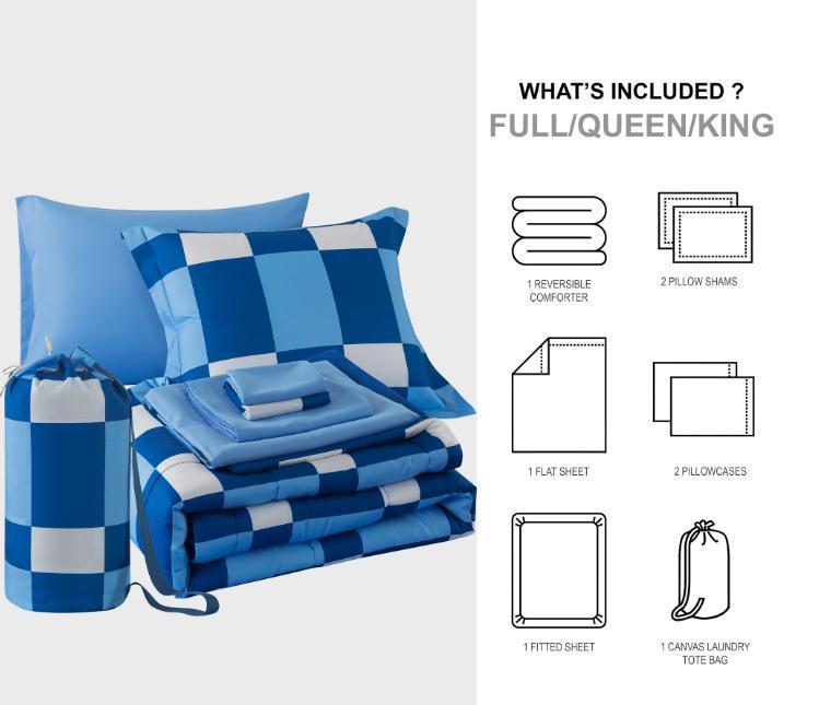 L25-BD167B 8PCS Comforter with Sheet set with Laundry Tote – include 1 comforter , 2 pillow shams , 1 flat sheet, 1 fitted sheet, 2 pillowcases, 1 laundry tote