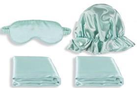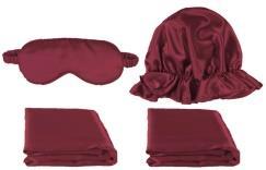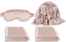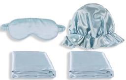 L25-BD144B 4PCS Silkly Satin sleep set -- 2 pillow cases, 1 eye mask, 1 Hair Bonnet Cap
