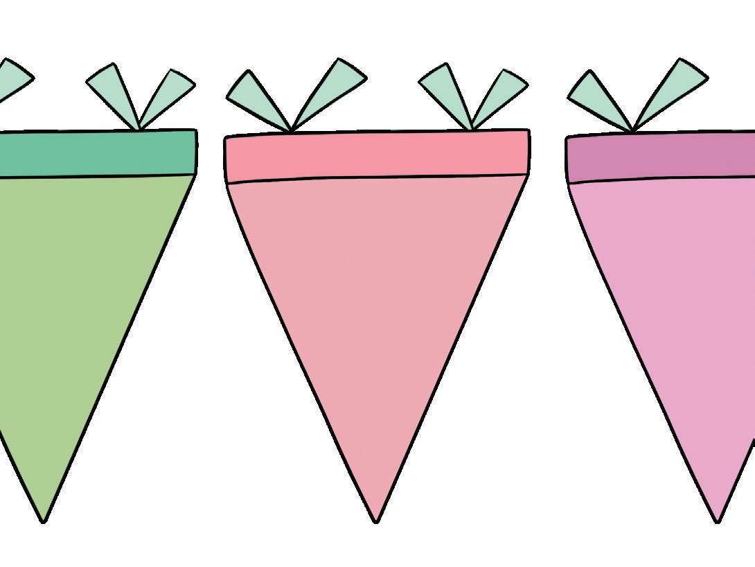 Draw a bobble on top, then color in the winter hat with green and two shades of pink.