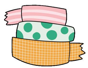 Add torn tape ends to the top and bottom rolls of tape, the color it all in with different colors and patterns.