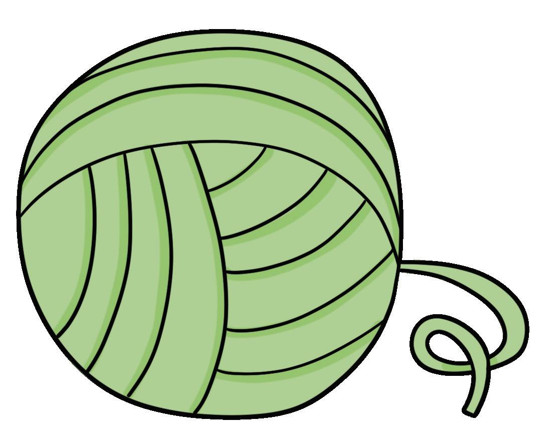 Draw five curved lines in the remaining space in the circle and add a loose strand of yarn sticking out of it. Then color it all in with two shades of green.