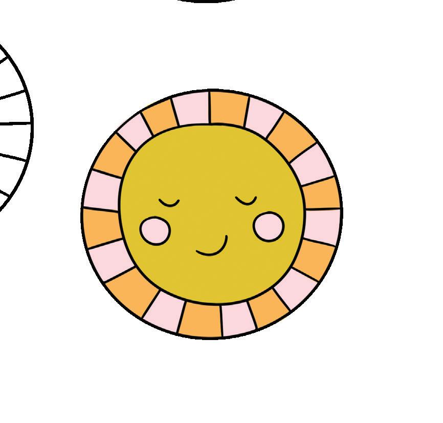 Add details to the front of the cap and a button on top, then color it all in with orange, yellow, and two shades of pink.