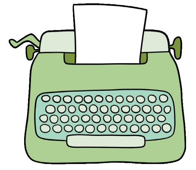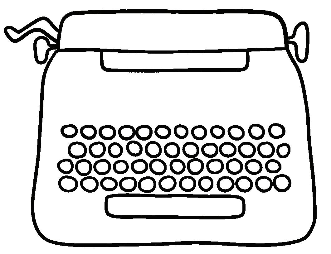 Add a piece of paper and an outline around the typewriter keys, then color in the typewriter with two shades of green and two shades of blue green.