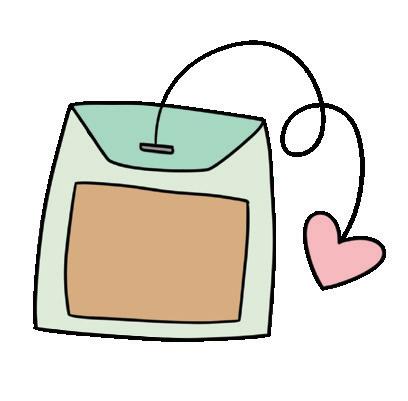 Draw a string with a heart on the end, then color in the tea bag with brown, pink, and two shades of blue green.