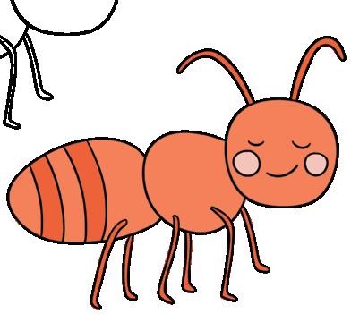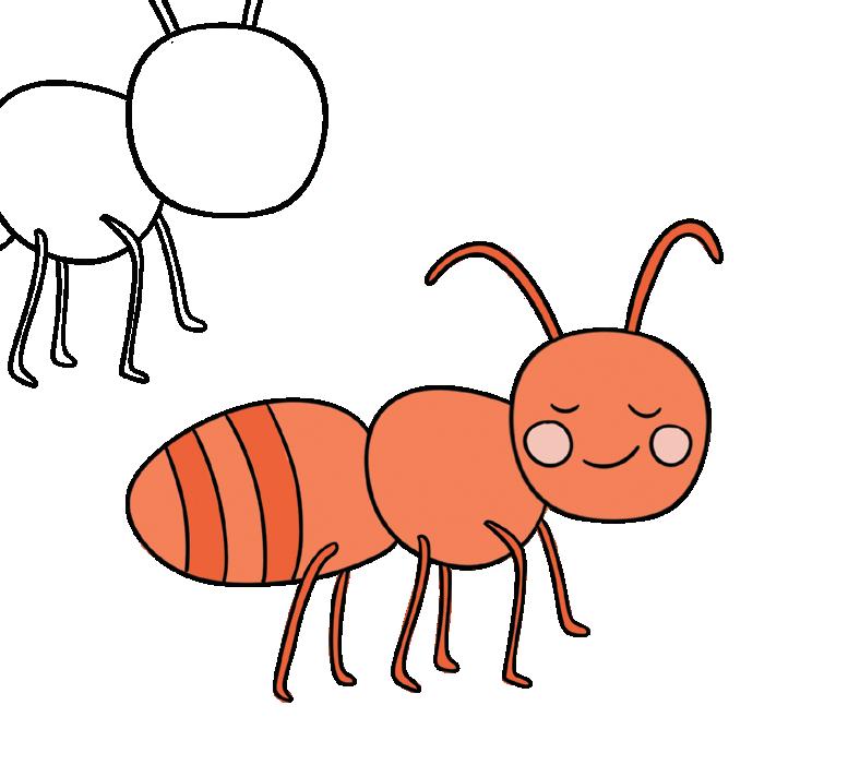 Add a face and lines on the ant’s body. Color it with peach for the cheeks and two shades of orange for the rest.