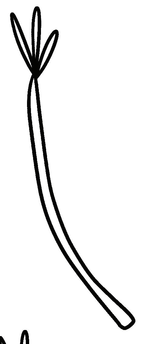 Draw leaves along the right side of the stem and add veins to each leaf. Color it in with green.