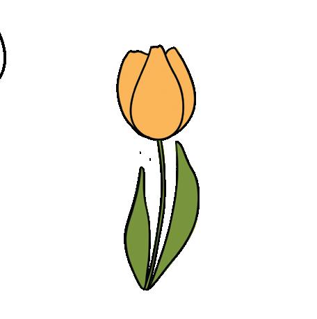 Add a large leaf on each side of the stem, then color in the tulip with orange and green.