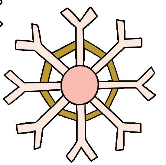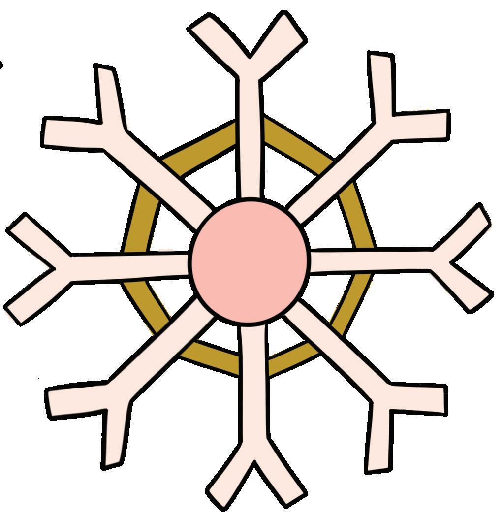 Draw two lines between each “Y” shape, then color in the snowflake with dark yellow and two shades of pink.