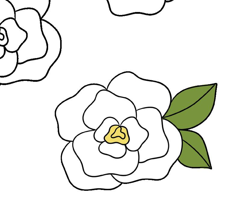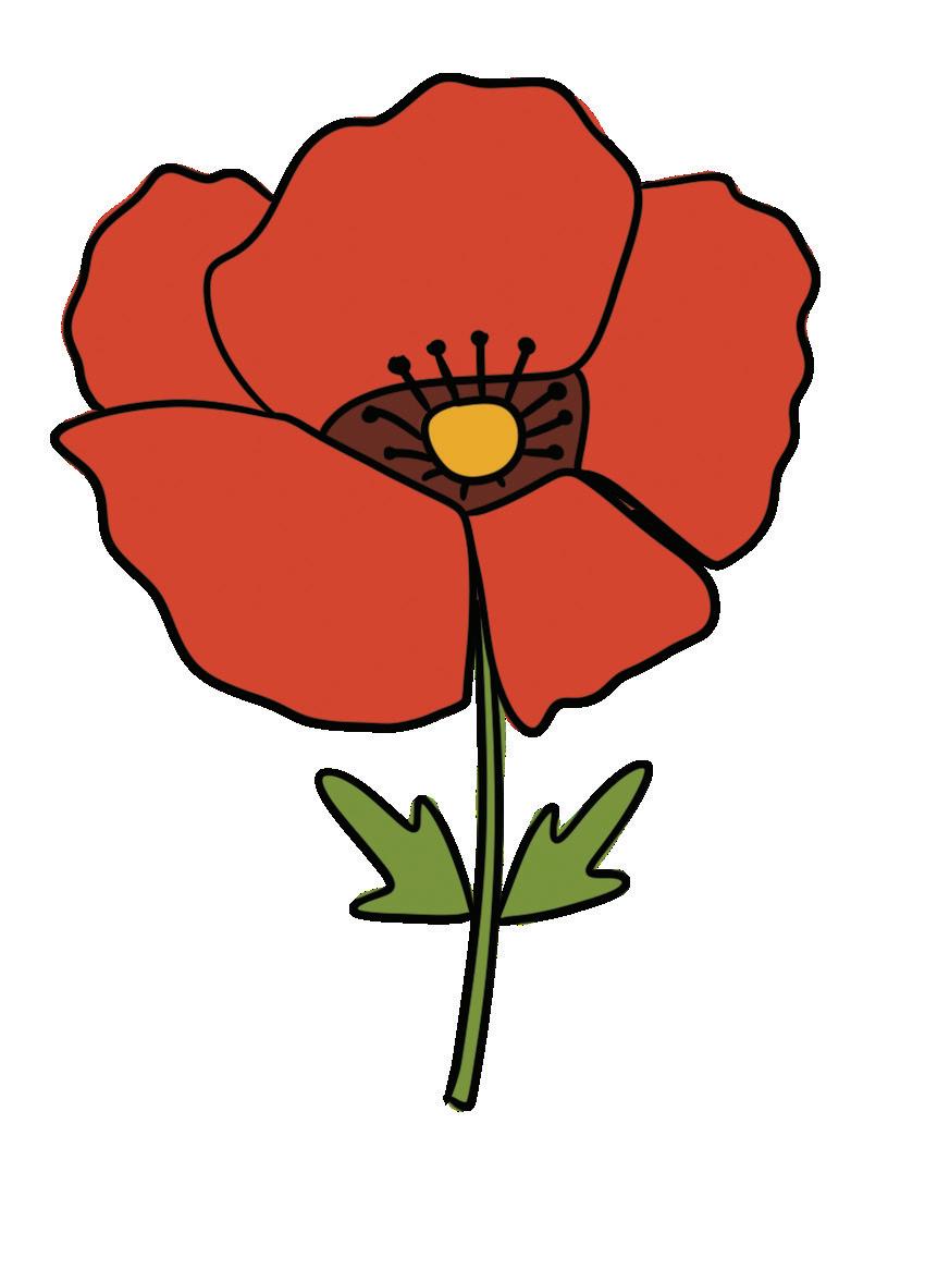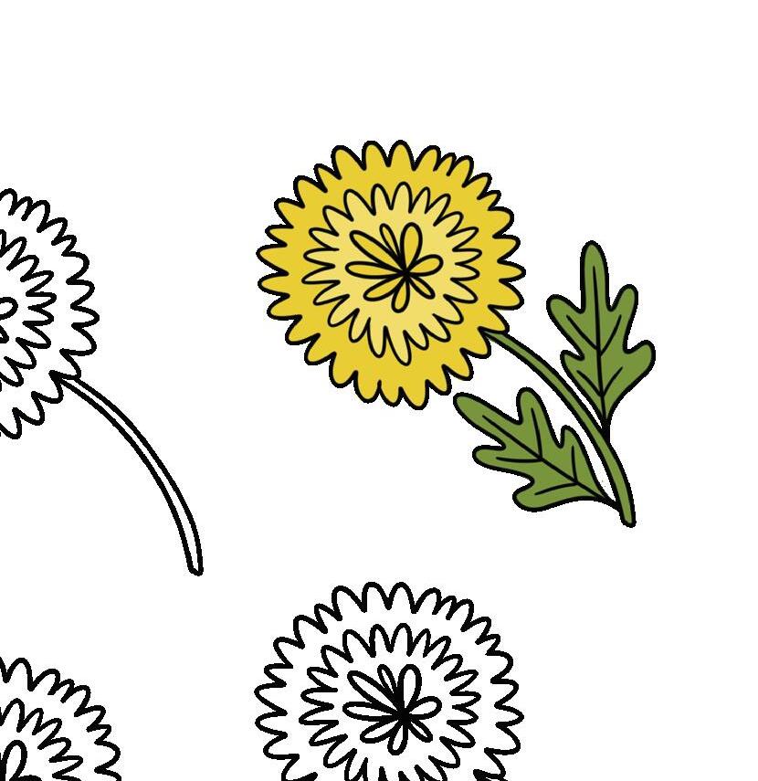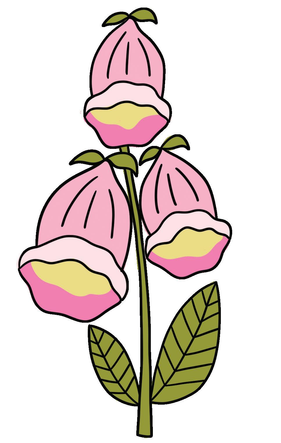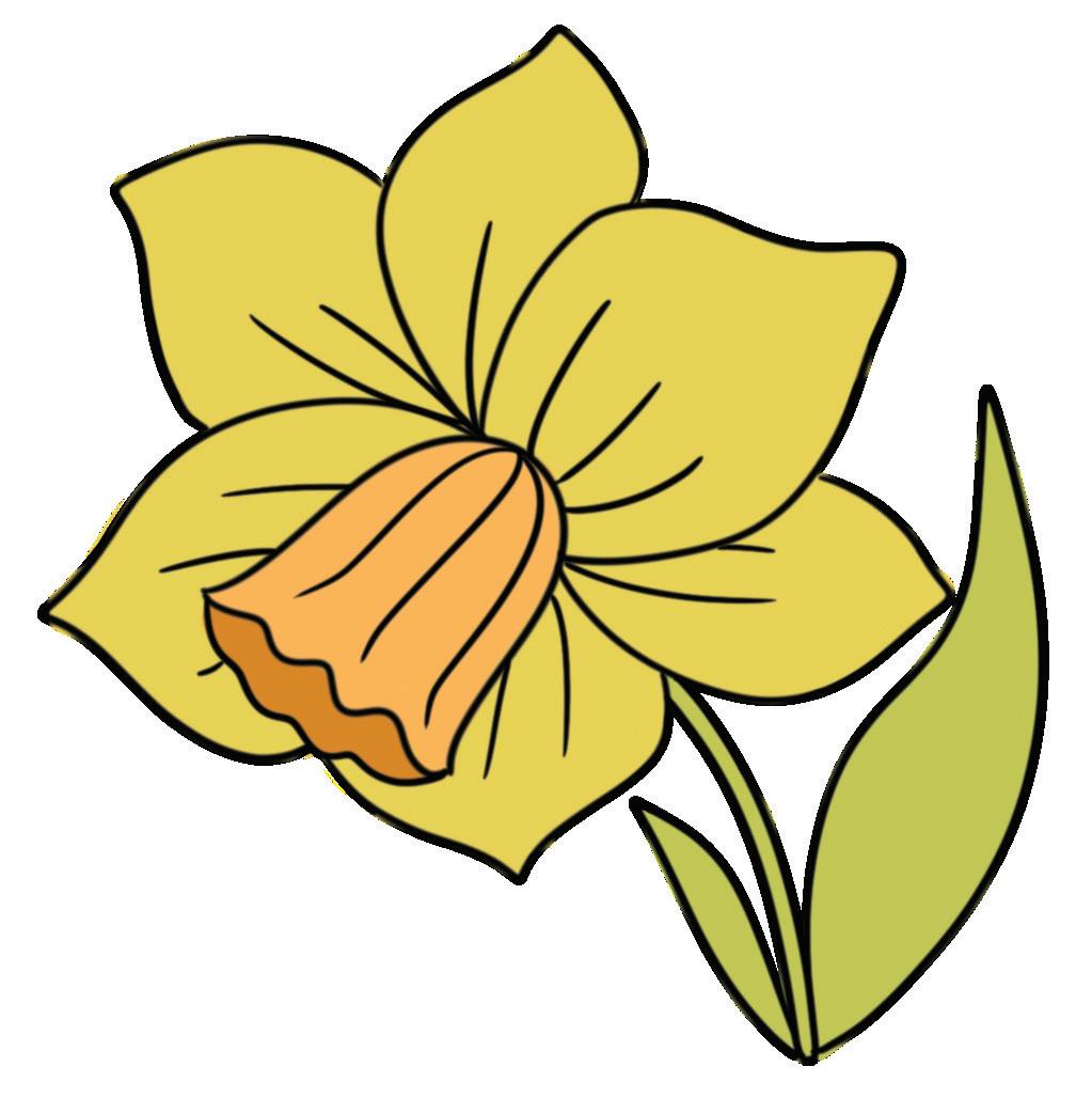 Add a stem and two leaves below the bottom flower and continue the stem up between each flower. Color it all in with green and two shades of orange.