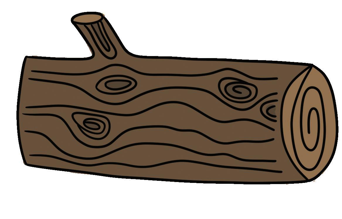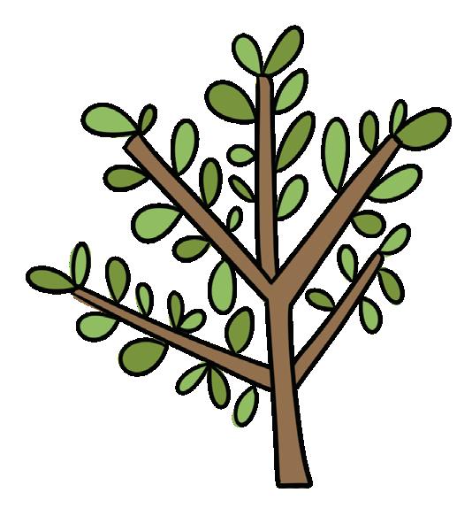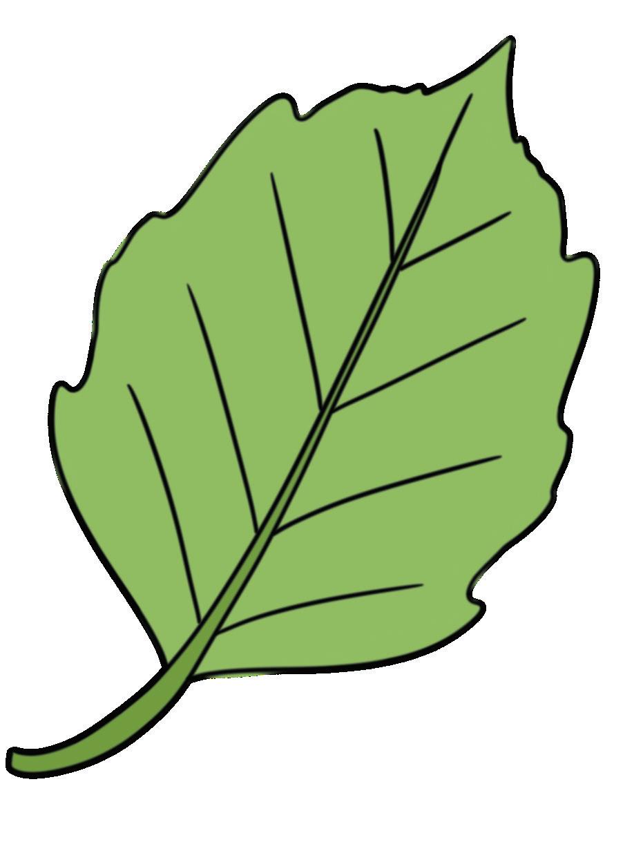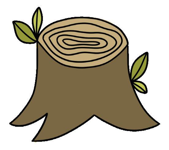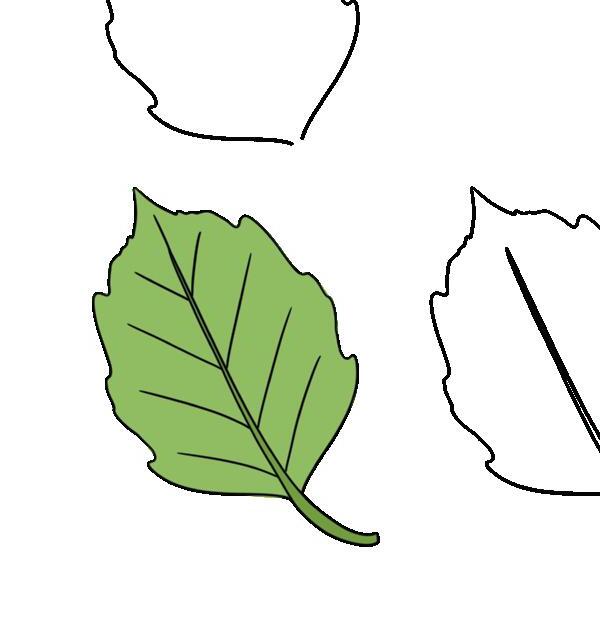 Add two leaves with veins on each side of the stump, then color it all in with two shades of green and two shades of brown.