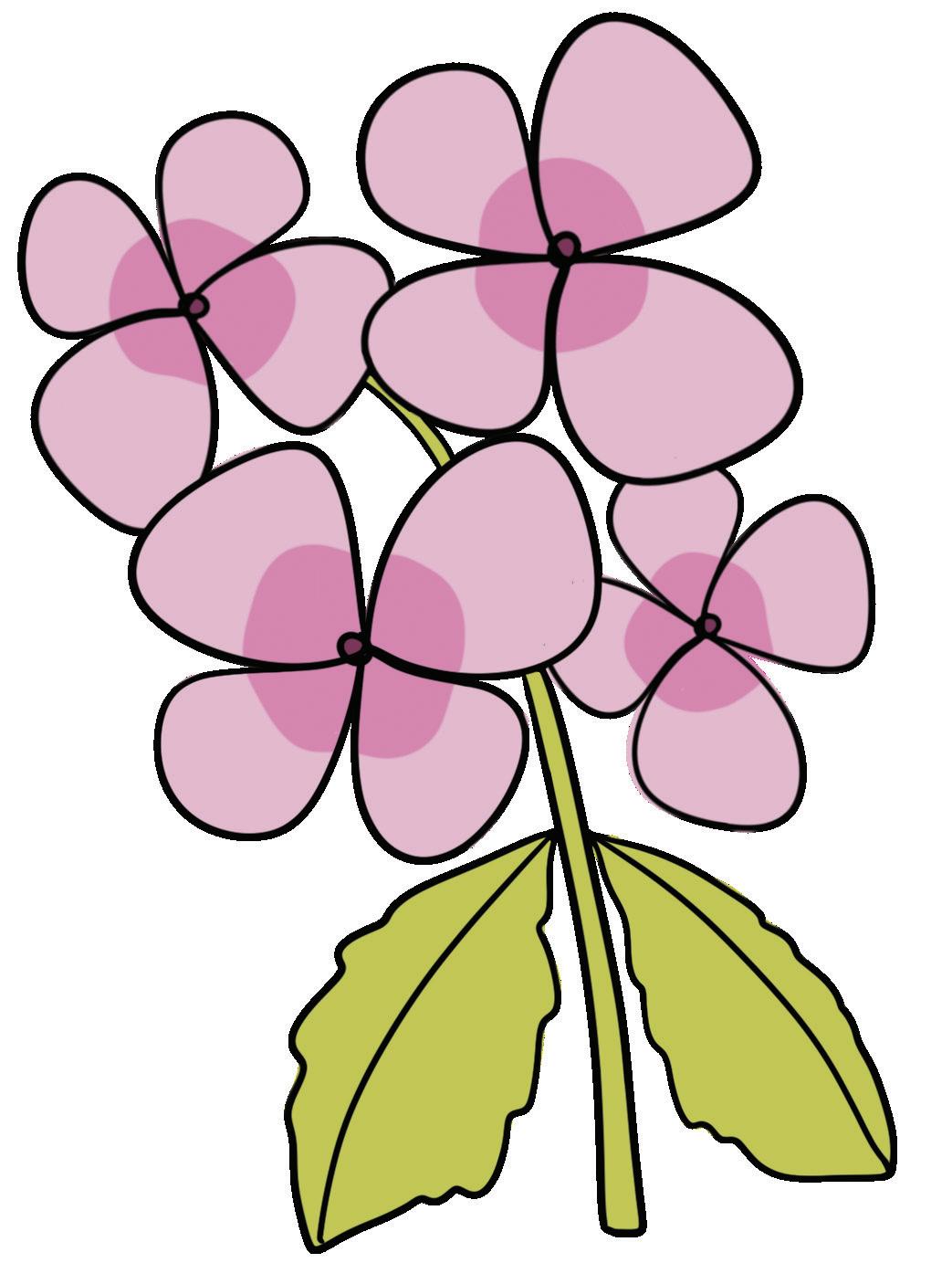 Add two leaves with veins, then color in the violet with green and two shades of purple.
