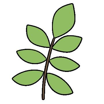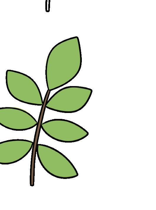 Draw three more leaves along the right side of the stem. Color the leaves green and the stem brown.