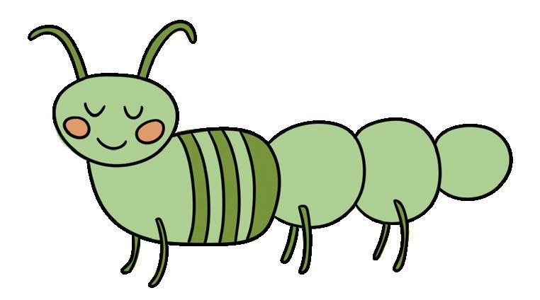 Add stripes at the tail end of the worm, then a face at the head end. Color it in with two shades of orange.