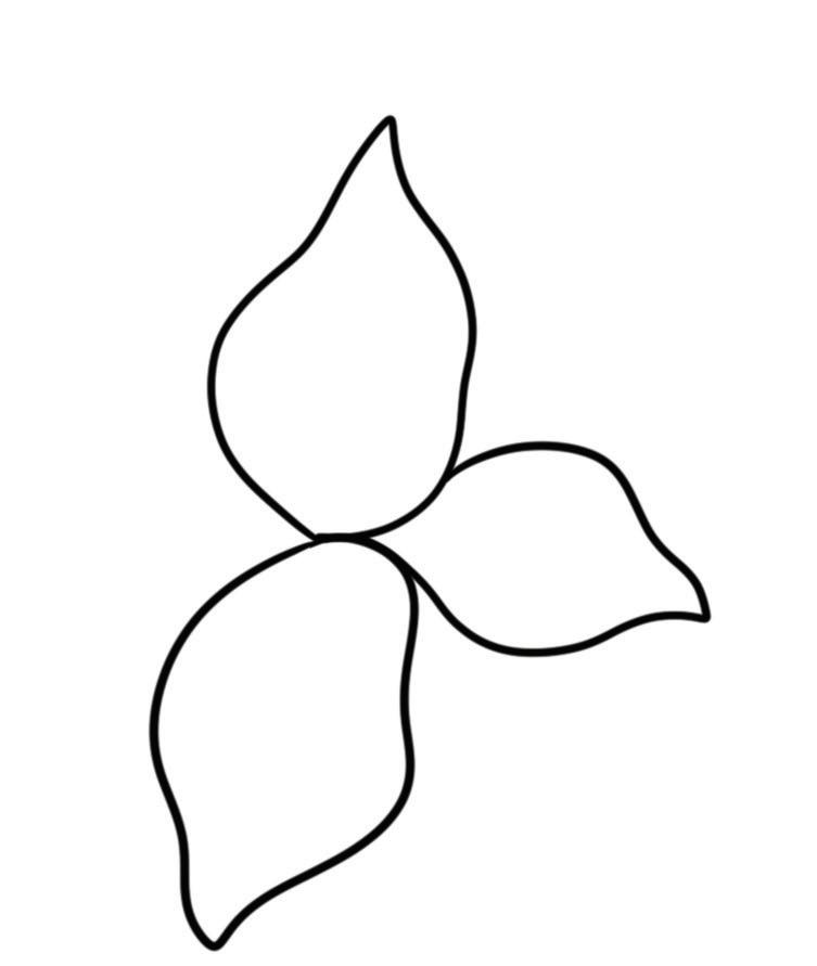 Draw two more similar ovals, one to the right of and one above the first petal.