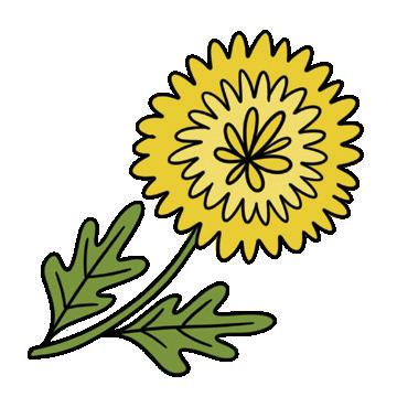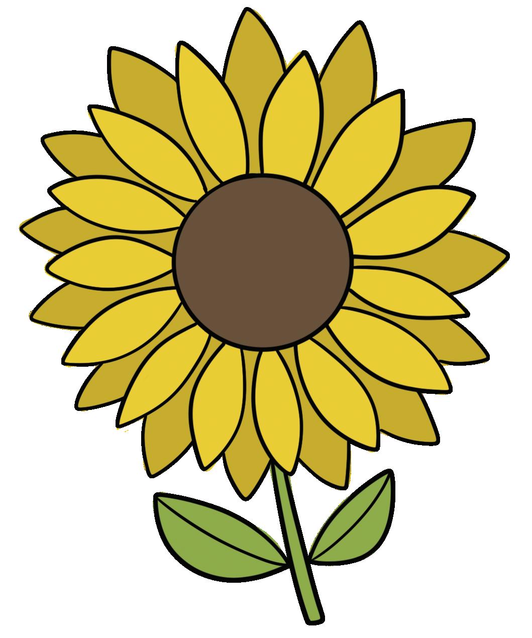 Add a stem and leaves with veins, then color in the sunflower with brown, green, and two shades of yellow.