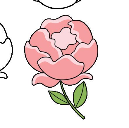 Add a little patch of grass on each side of the stem, then color it all in with red, light pink, tan, and green.