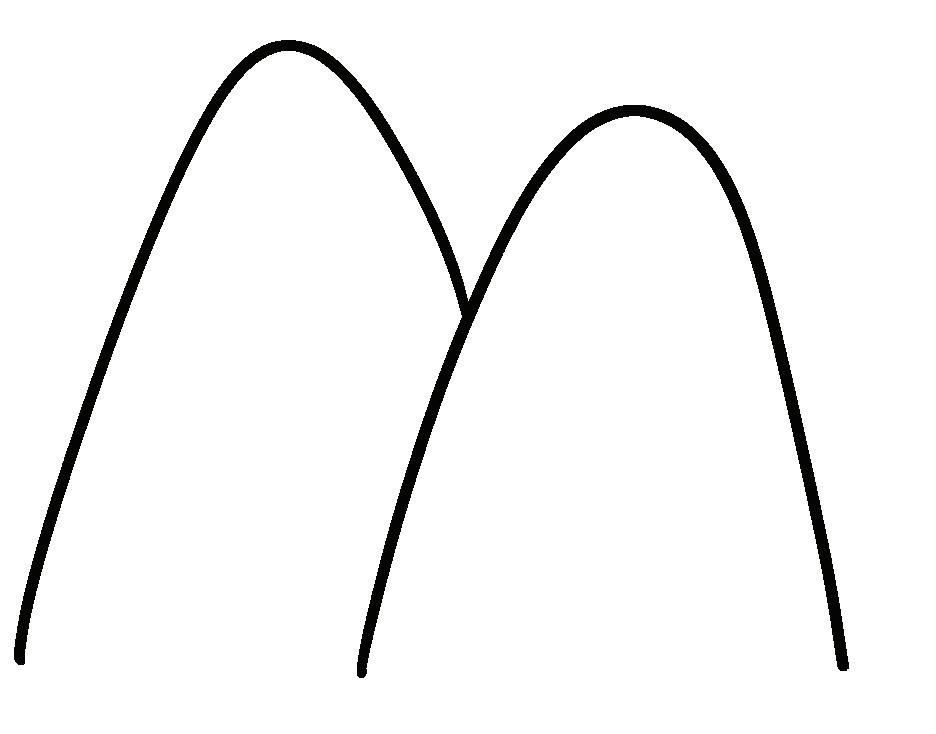 Draw lines between the two arches, then color it all in with orange, pink, dark yellow, and blue green.