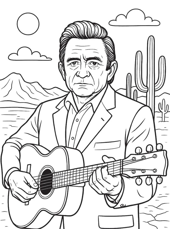 40 pages to color featuring timeless country legends