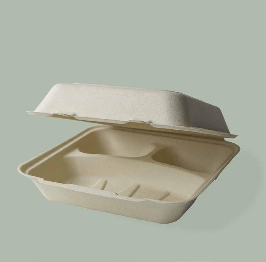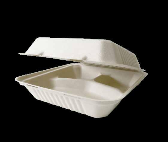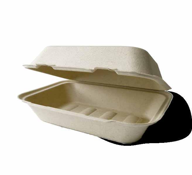 9. 9” x 6” Unbleached Bagasse Hinged Clamshell BE-FC96CL