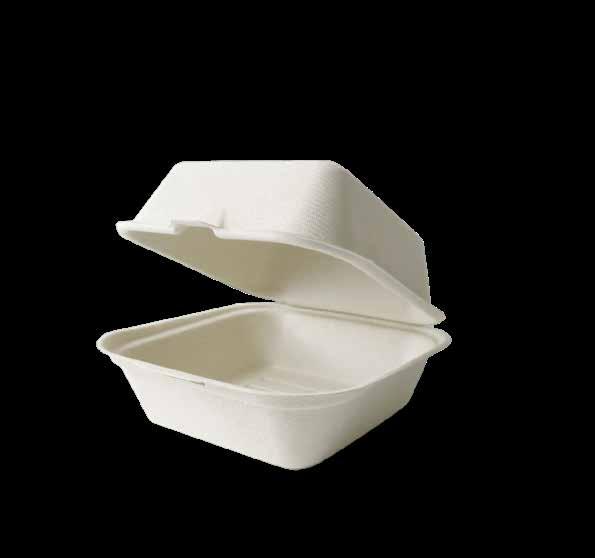11. 6” x 6” Unbleached Bagasse Hinged Clamshell BE-FC66FF