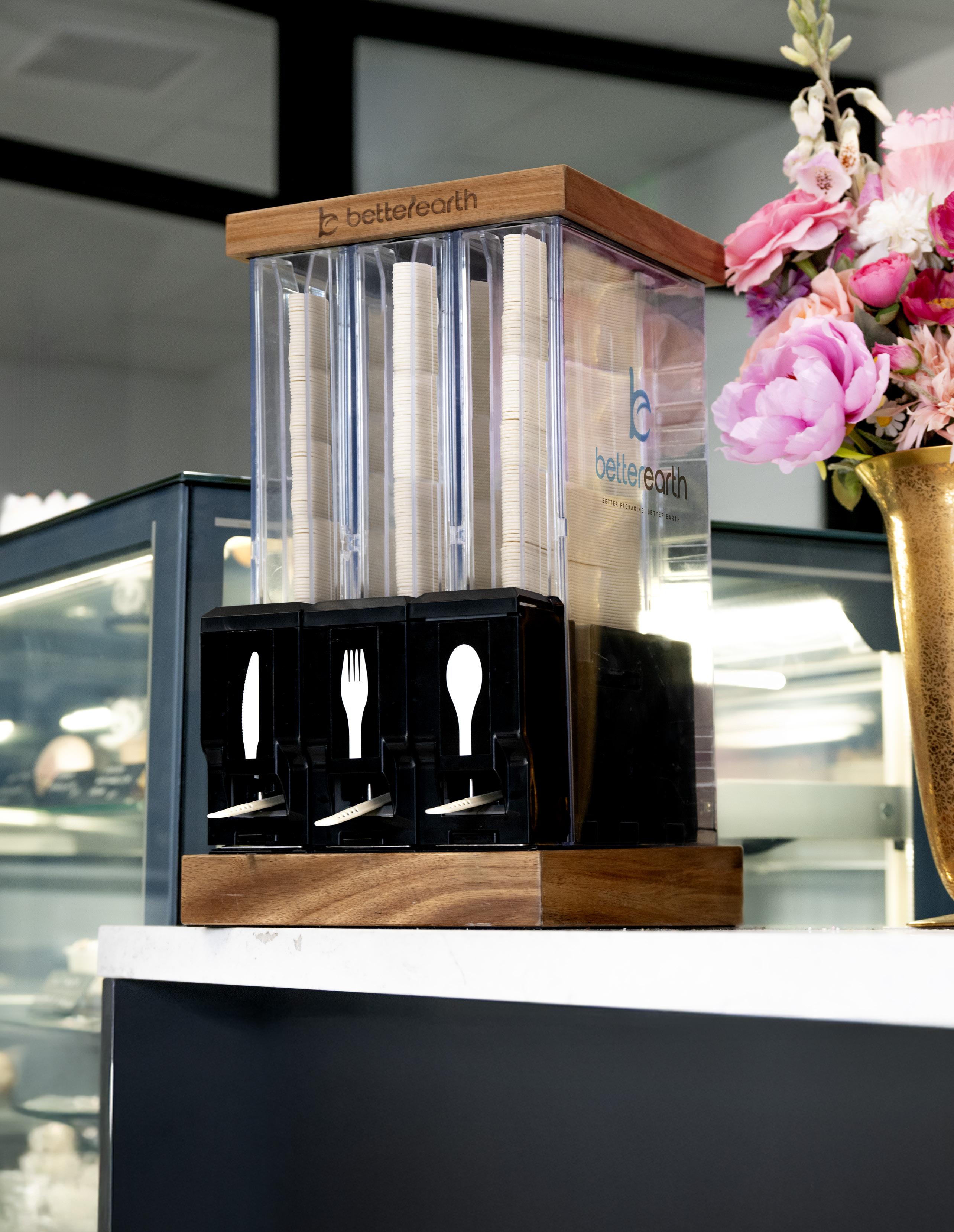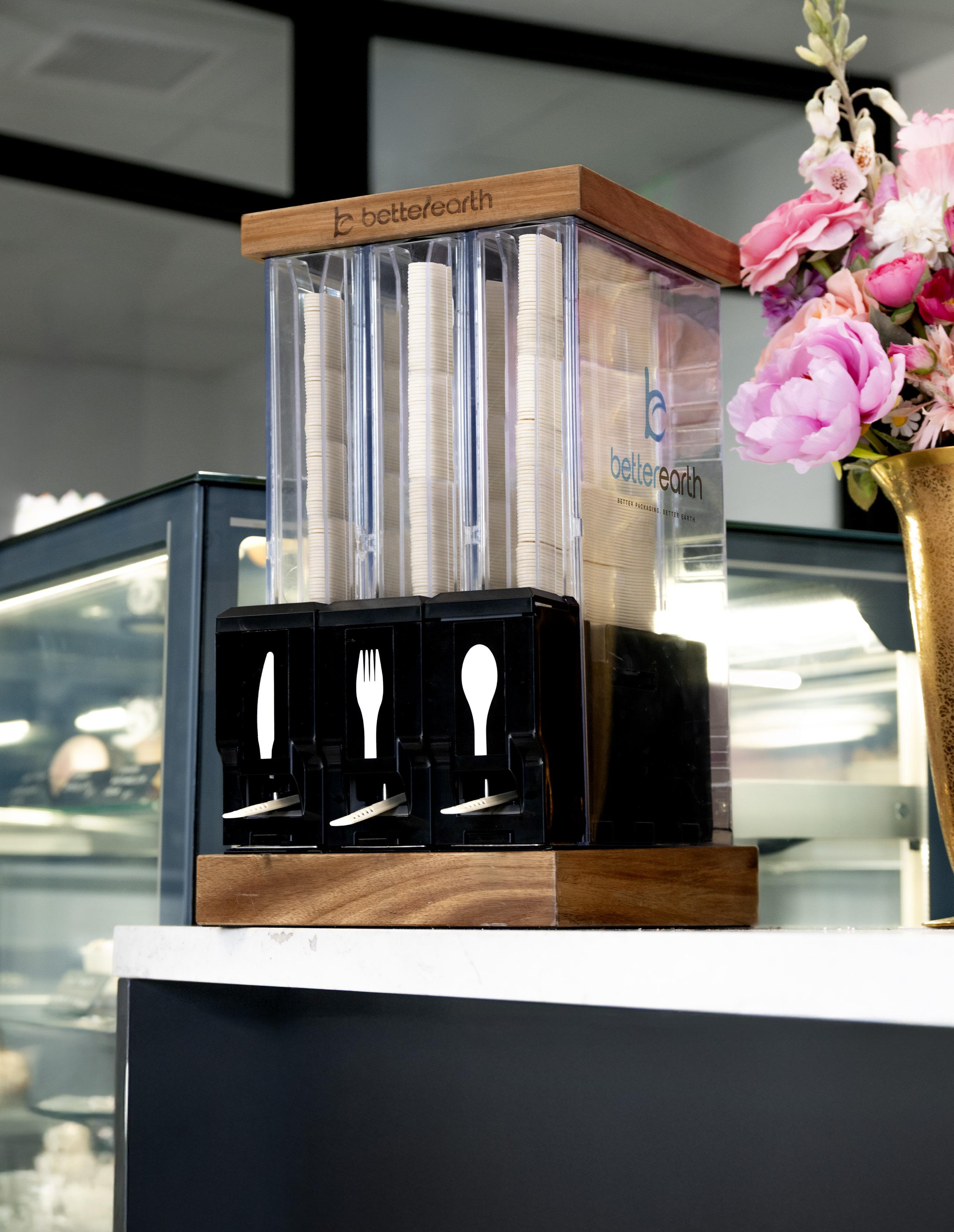 TOUCH-FREE DISPENSERS AND COMPOSTABLE CUTLERY