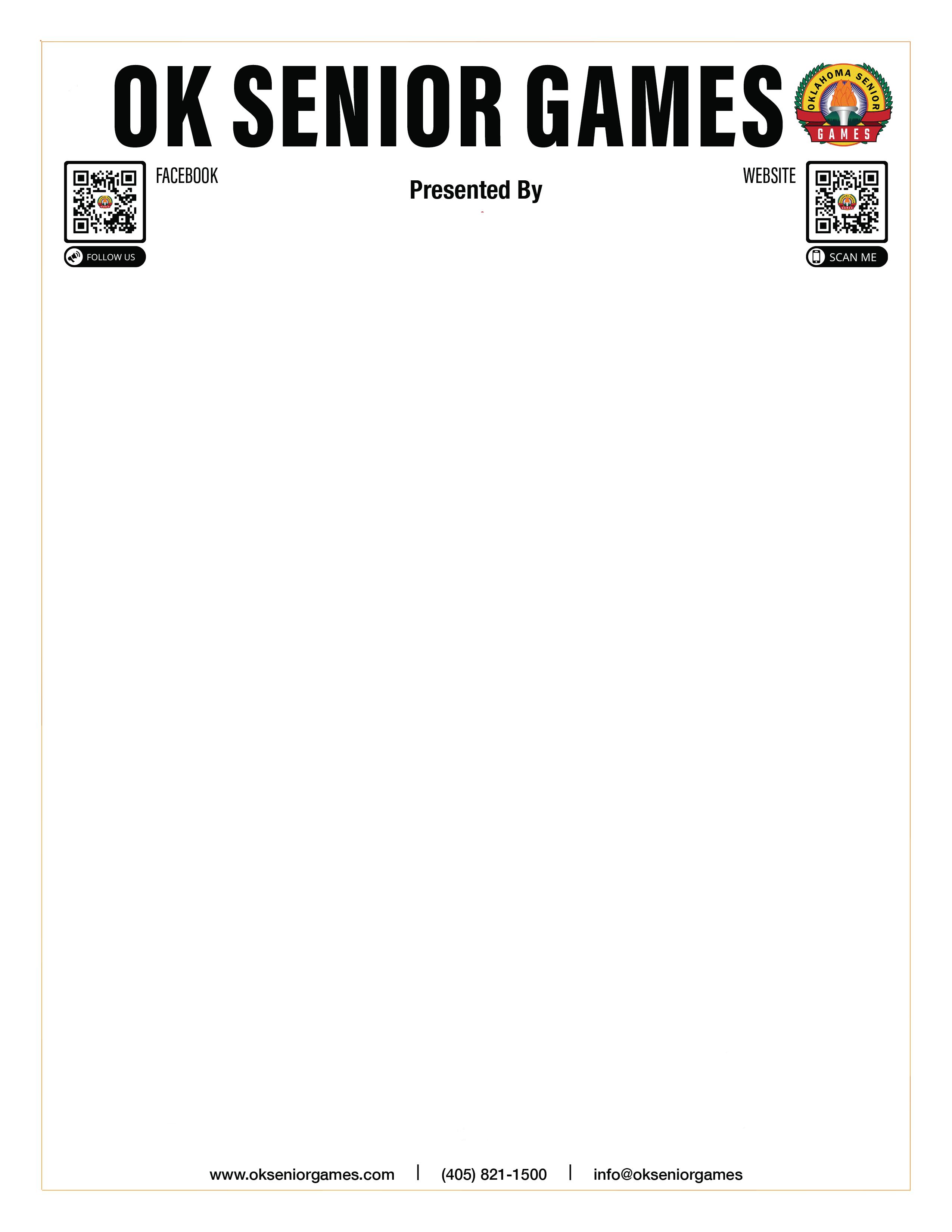 Please consult the Oklahoma Senior Games website for the complete list of rules at OKSeniorGames.com.