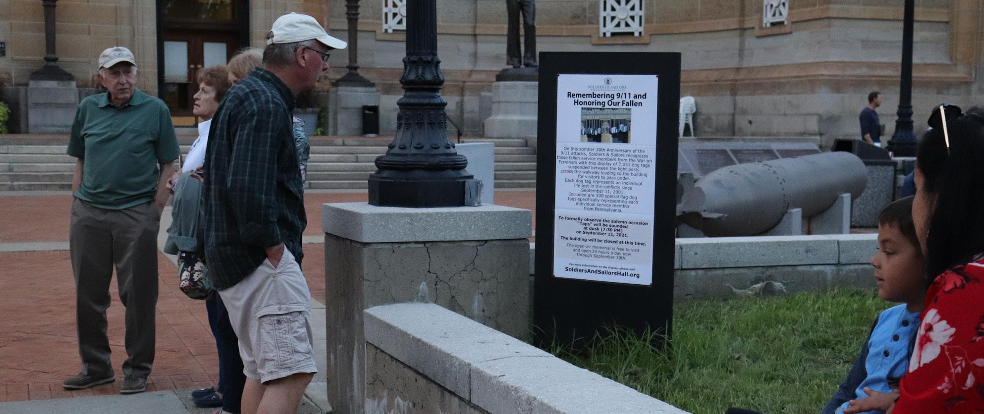 While much happened over the year, not all the Museum Team's activities were confined to inside the building. For the somber 20th Anniversary of the 9/11 attacks, Soldiers & Sailors recognized those service members killed fighting the War on Terror with an outdoor exhibit installation. Dog tags, one for each fallen soldier, were suspended from 200 feet of chain strung across and between the light posts that line the walkway. Visitors passed under the Remembering 9/11 and Honoring Our Fallen Dog Tags Installation
