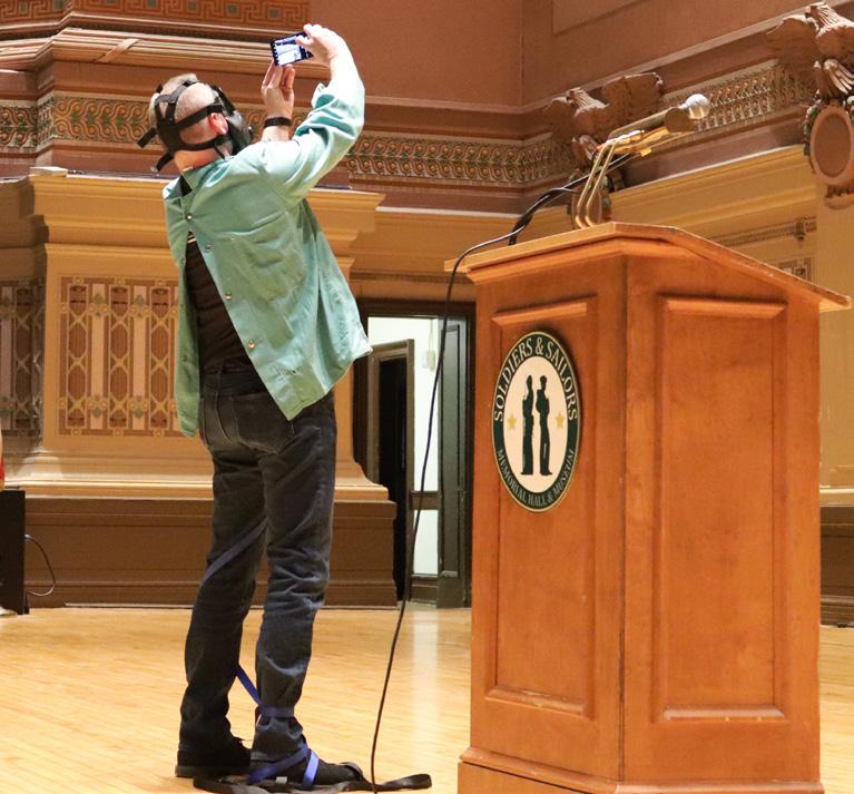 Soldiers & Sailors' John "Hannibal" McCabe taking a photo of University of Pittsburgh students filling the auditorium during the Pitt Welcome Freshmen Silence of the Lambs Screening.