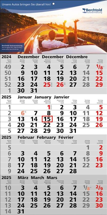 es ist wieder so weit: die Kalendersaison beginnt. Ab Seite 6 stellen wir Ihnen die brandneuen Kalender für 2025 vor. Ob Wand-, Tisch- oder Buchkalender, Sie finden bei uns die richtige Auswahl! Sichern Sie sich als Erster die Präsenz im Büro Ihrer Kunden!
