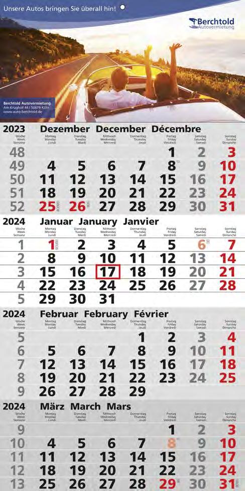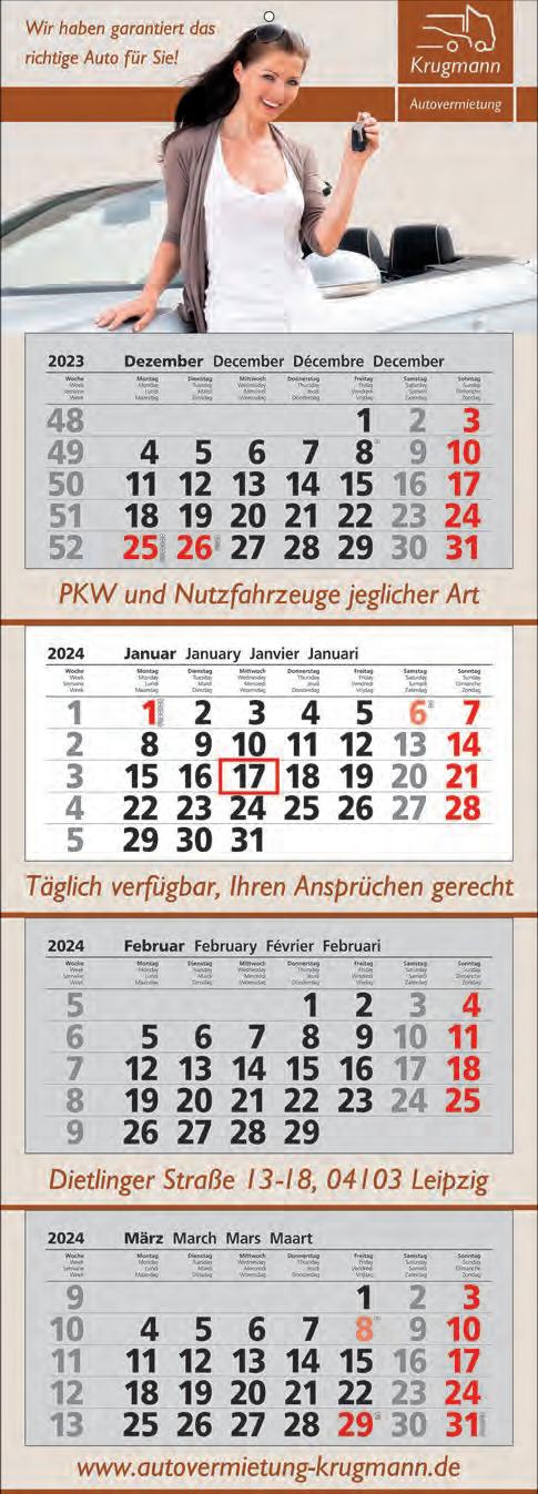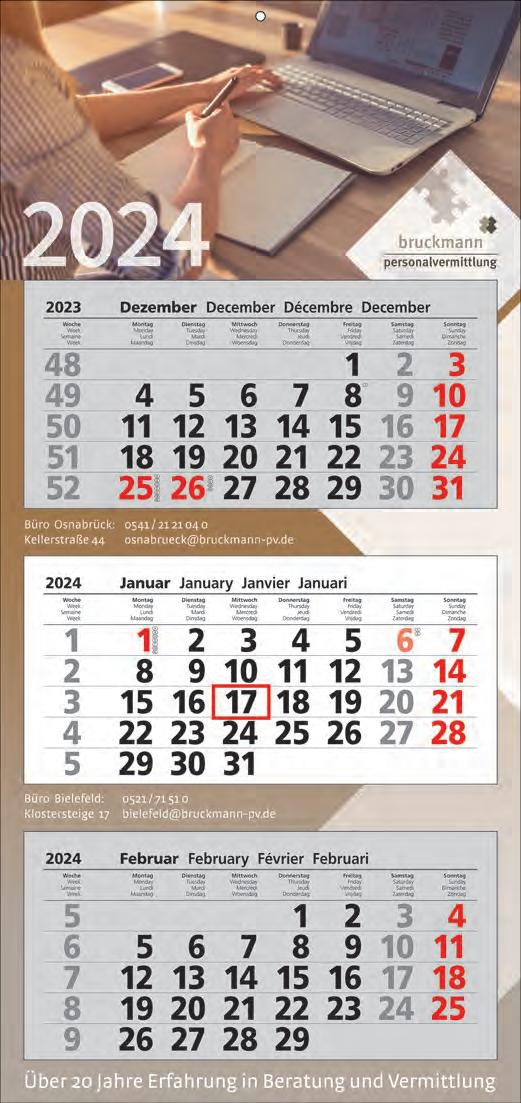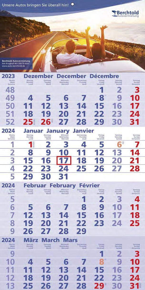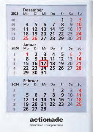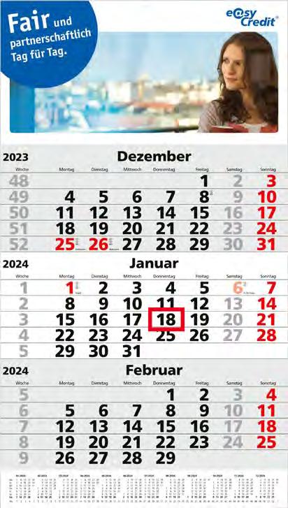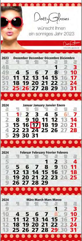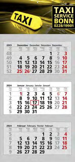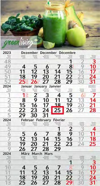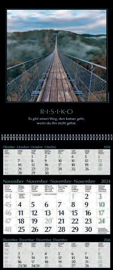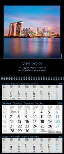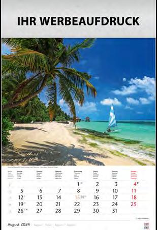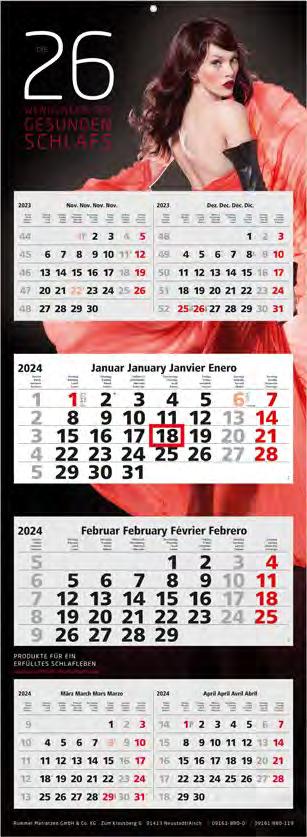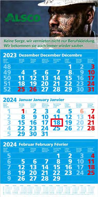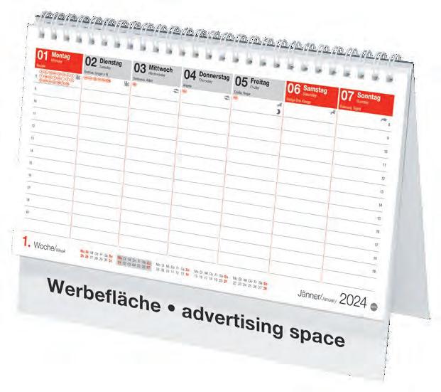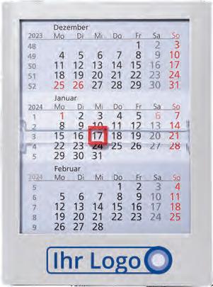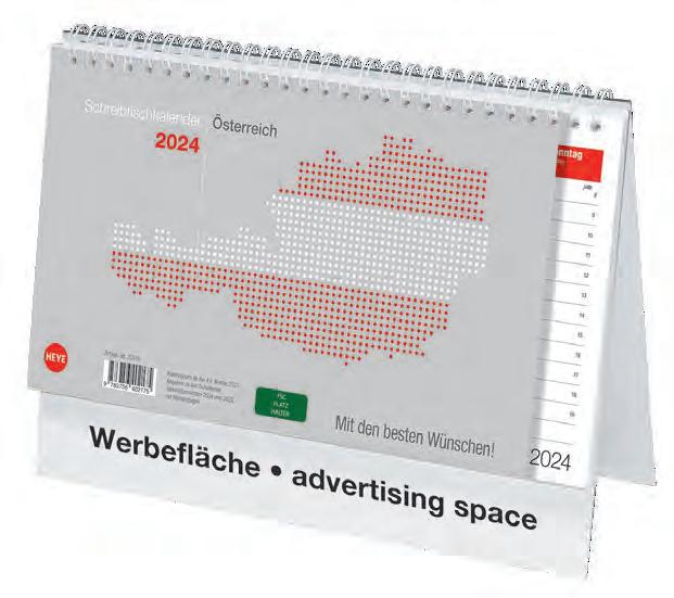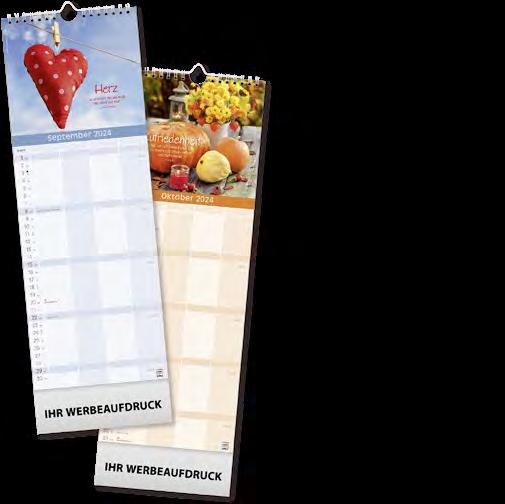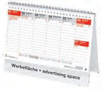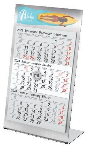 Für die Präsenz Ihrer Marke beim Kunden an 365 Tagen im Jahr bieten wir Ihnen ab Seite 46 eine große Auswahl Werbekalender für 2024 – hier ist eine besonders langfristige Werbewirkung garantiert! Je schneller Sie bestellen, desto früher können Sie verteilen, und sich so den besten Platz im Büro Ihres Kunden sichern!